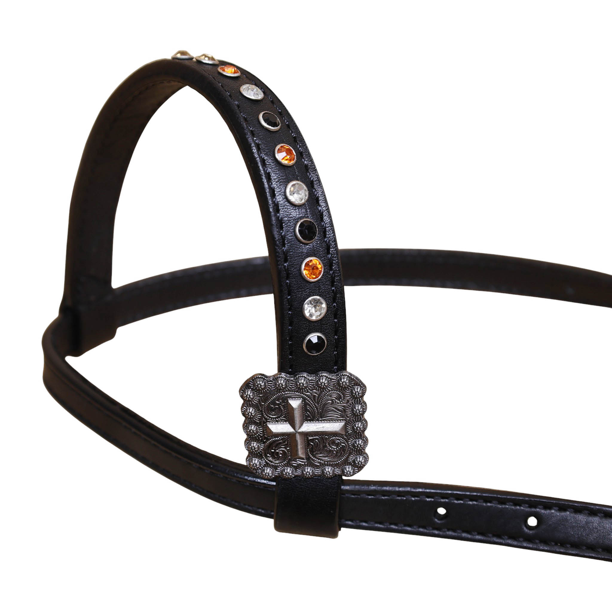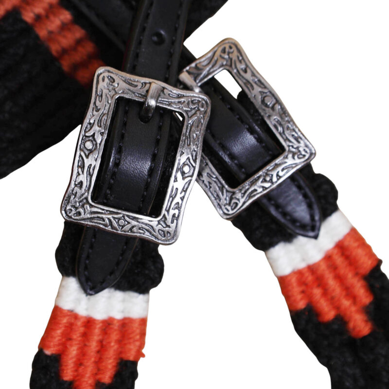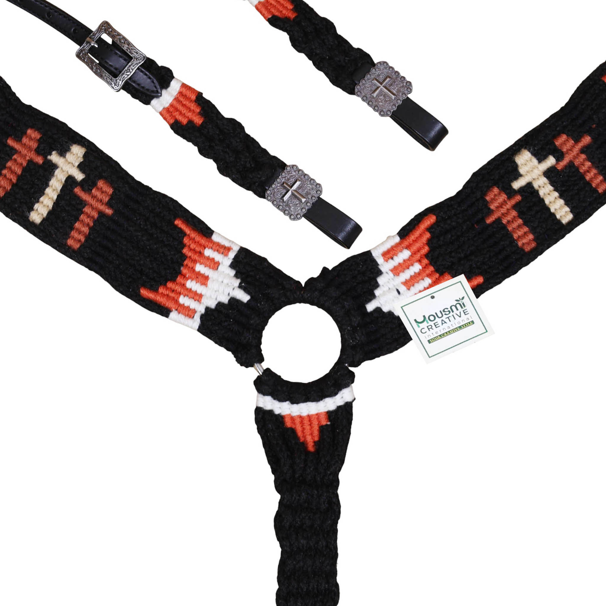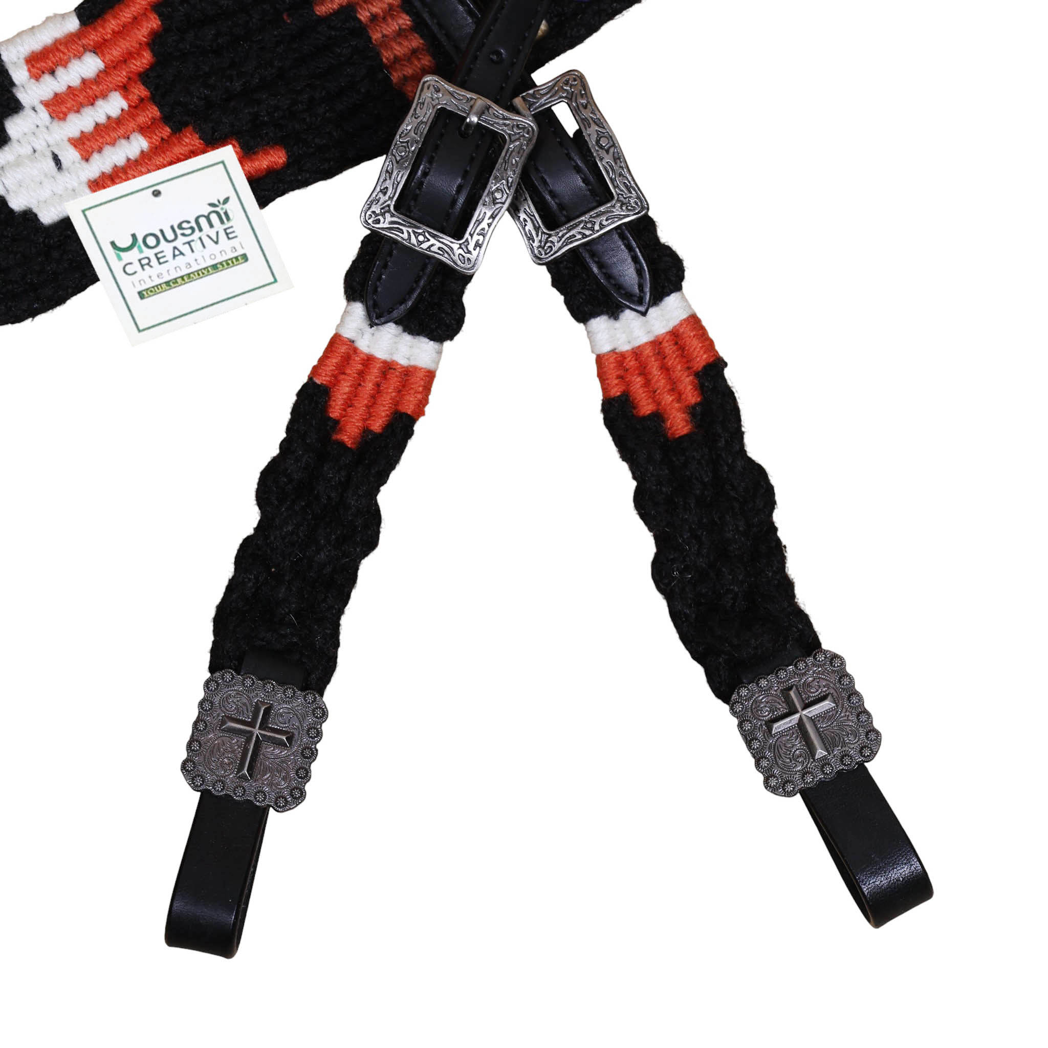 Headstall Type: Western Headstall and Breast Collar tack Set decorated with 3 cross design Mohair Headstall tack set decorated with matching front girth 32″ on argentina leather