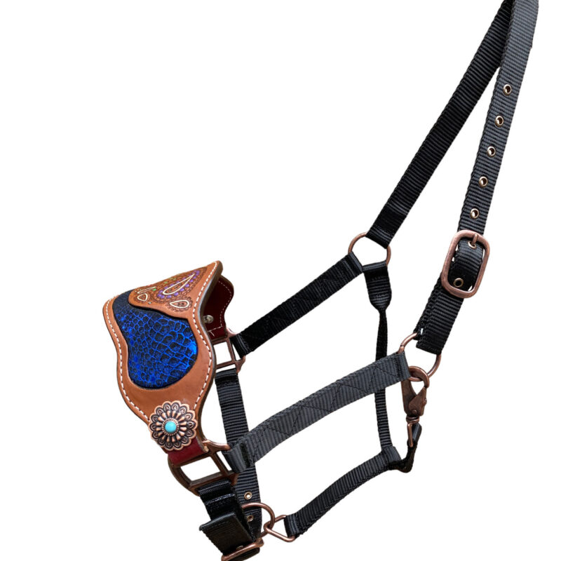 - Bronc Halter Decorated with paisley carving with royal snack print
