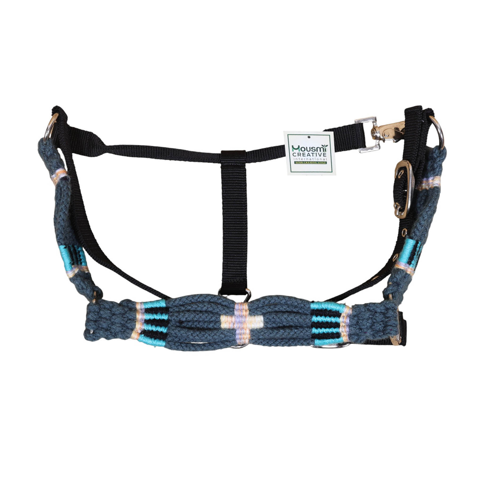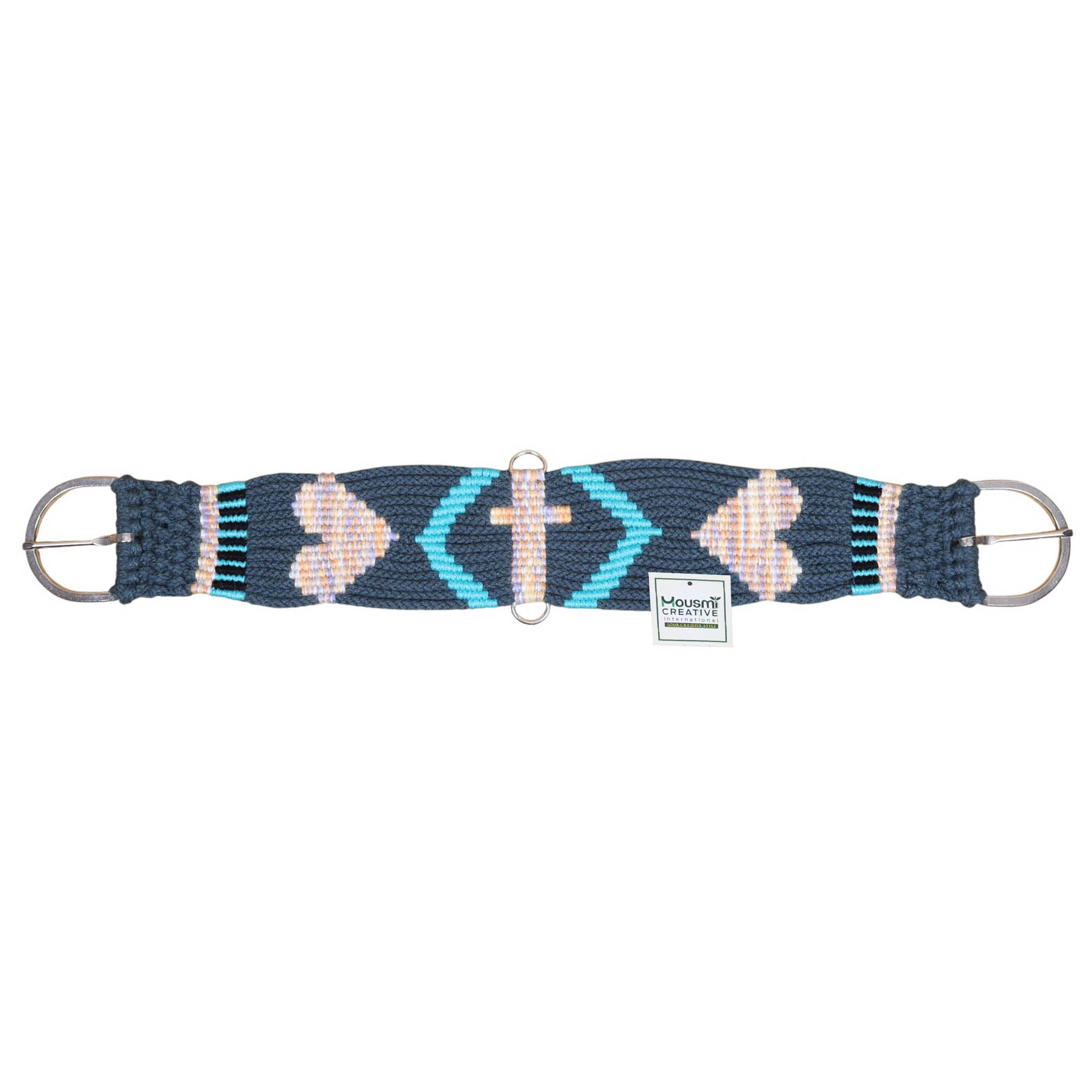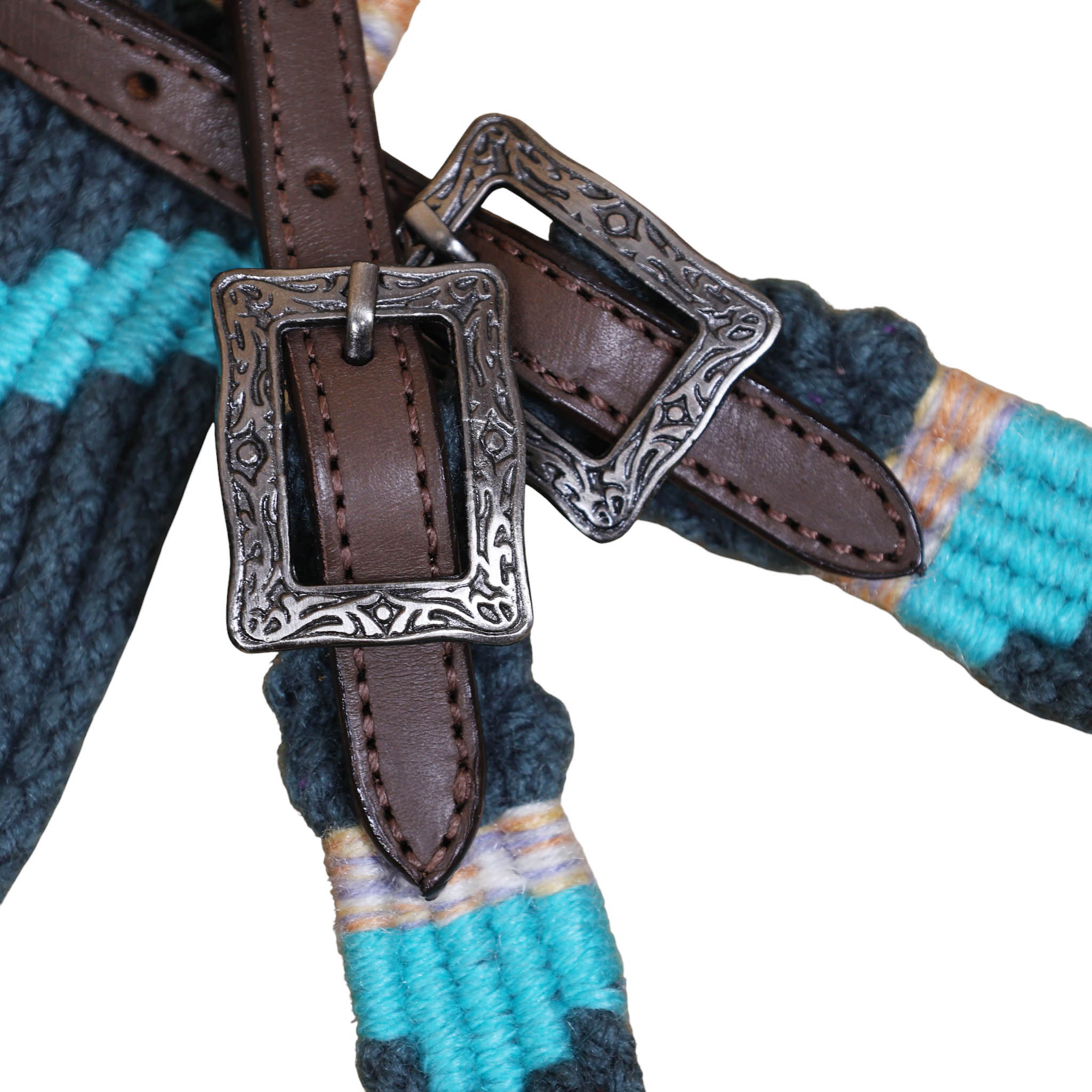 Dark Grey, Sky Blue and Biege Mohair Headstall tack set decorated with matching front girth 32″ on argentina leather (HSBM 114502)