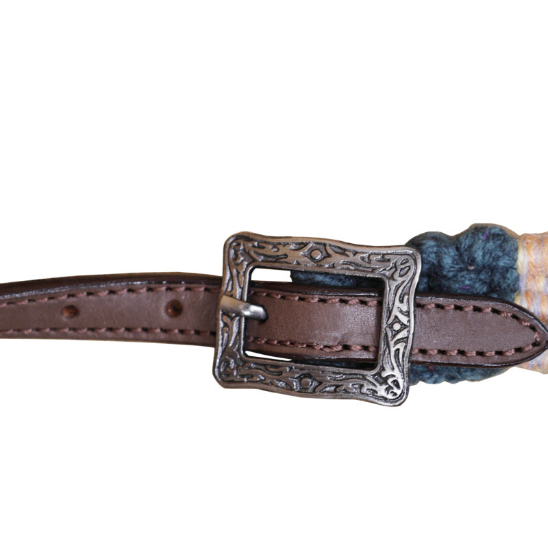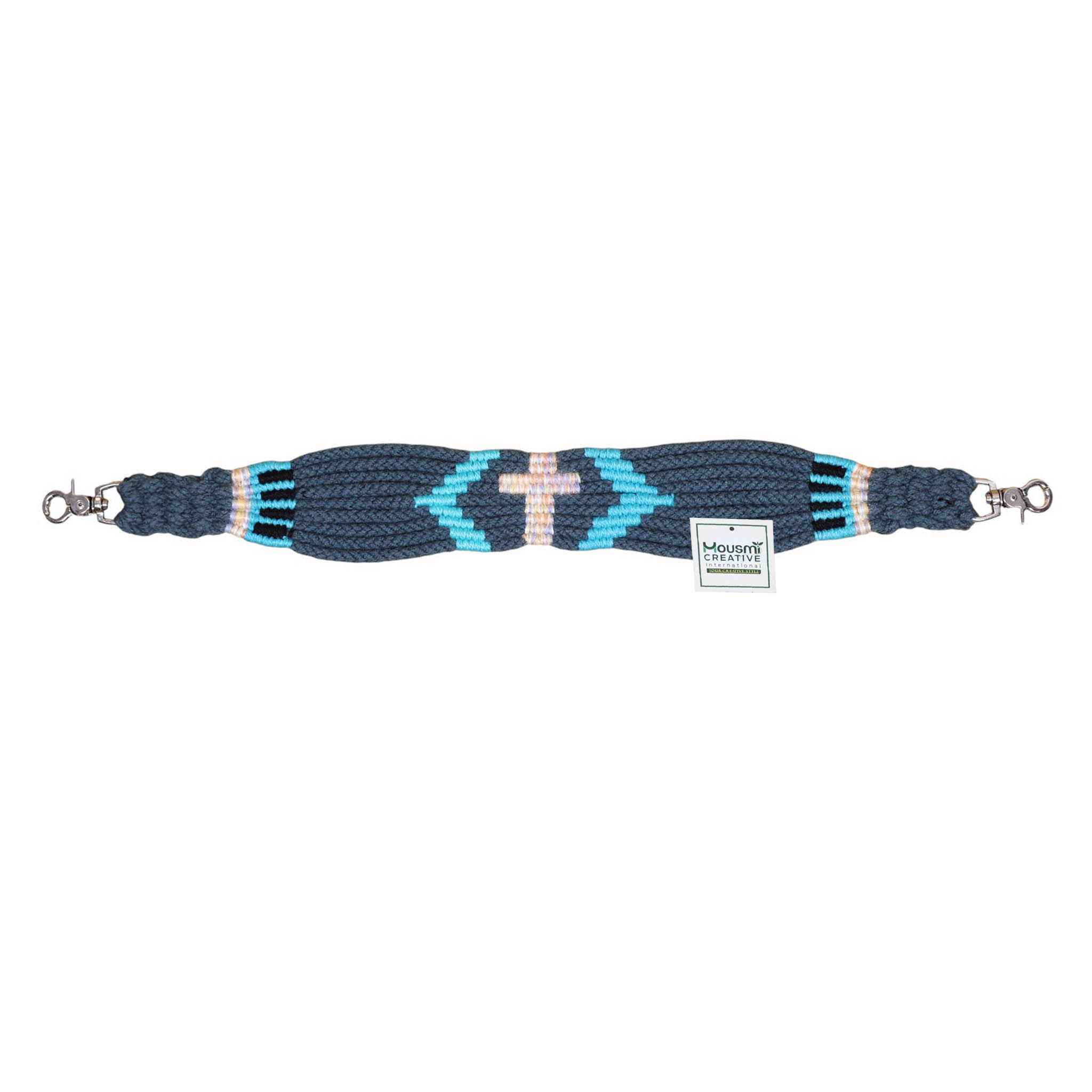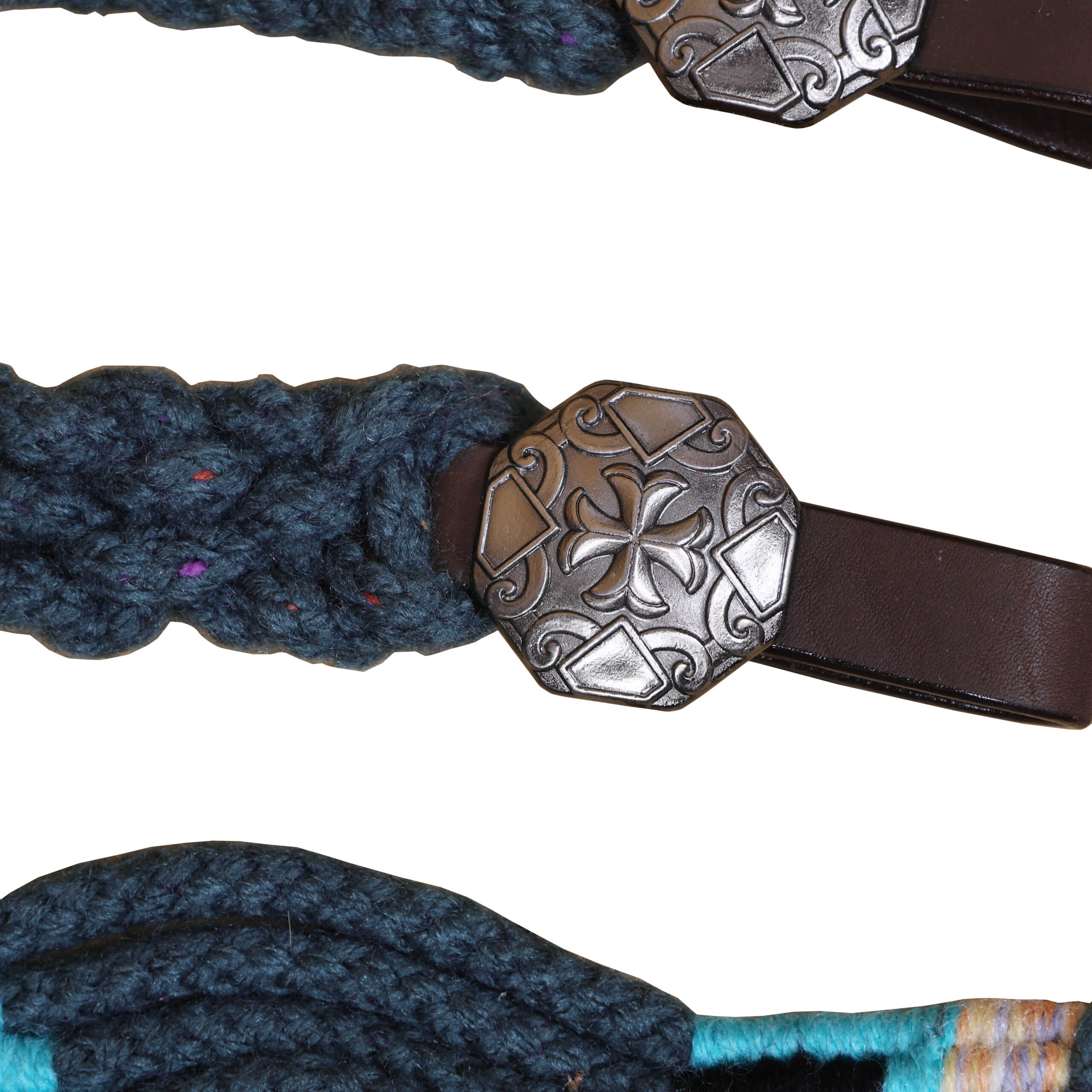 Headstall Type: Western Headstall and Breast Collar tack Set decorated with Dark Grey, Sky Blue and Biege Mohair Headstall tack set decorated with matching front girth 32″ on argentina leather