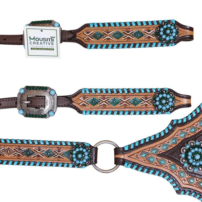 Western Leather Headstall and Breast Collar tack Set by Manufacturer and exporter of leather equestrian products. Master of handcrafting and headstall set, having a team of designers and the articians in sampling.