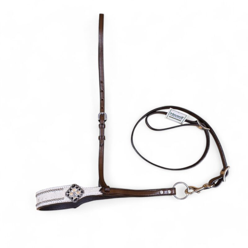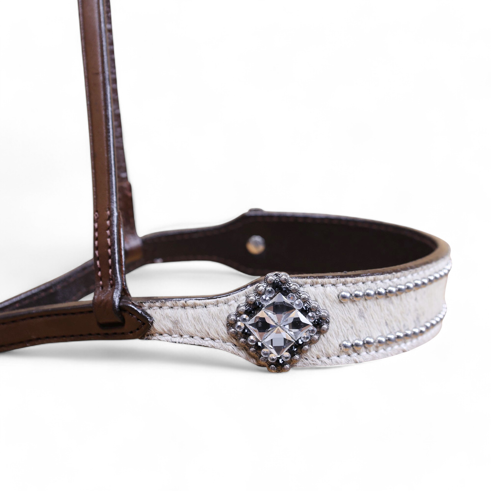 Western Horse Tack Genuine Argentina Cowhide Leather Tie Down With Removable Leather Strap. This Tie Down Decorated With Matching Stones on Both Side of Acid Wash Hair on Noseband. It Helps to Control Horse Head Position and Maintain Balance. This Tie Down Provides a Premium Appearance to Your Horse While Training.