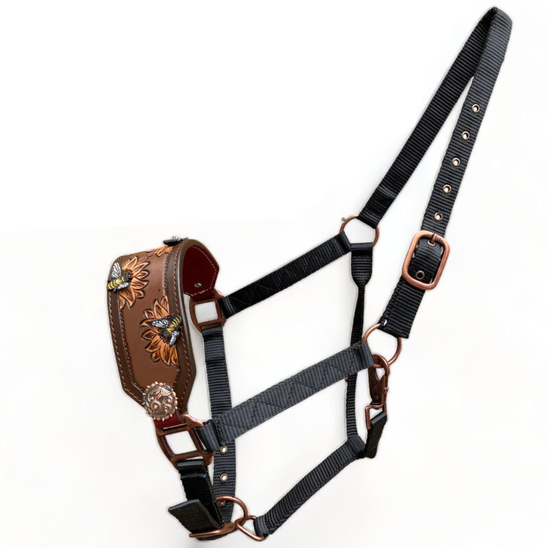 • Bronc Halter Decorated with sunflower carving with 3D bees
