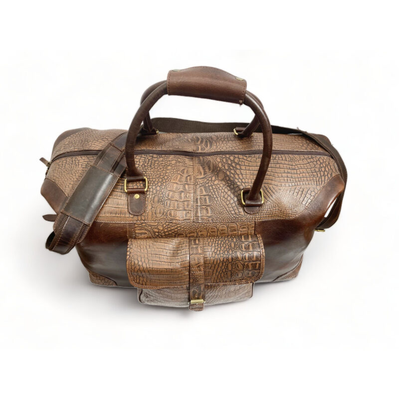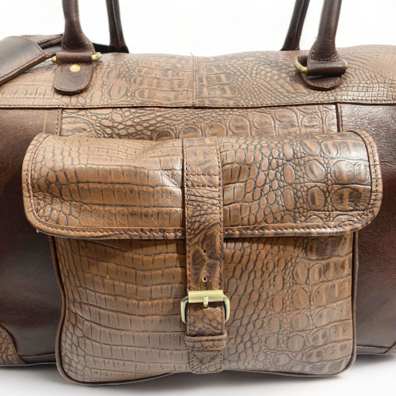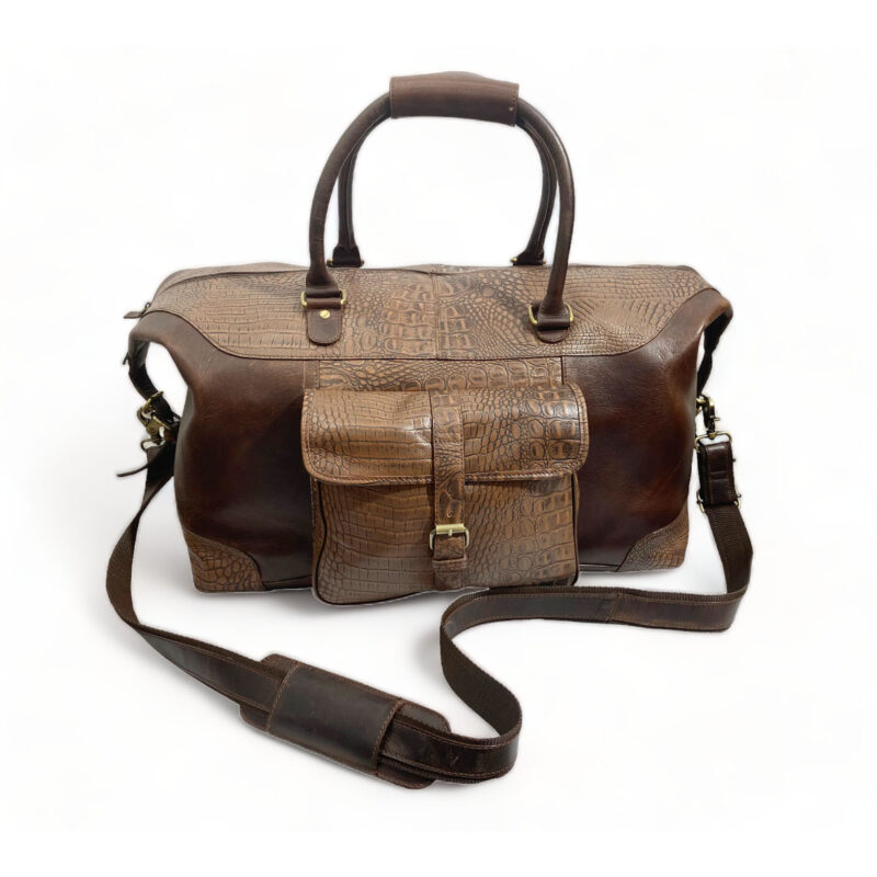 Bag Type: Crocodile Skin Textured Genuine Cowhide Leather Weekender Travel Duffle Bag.