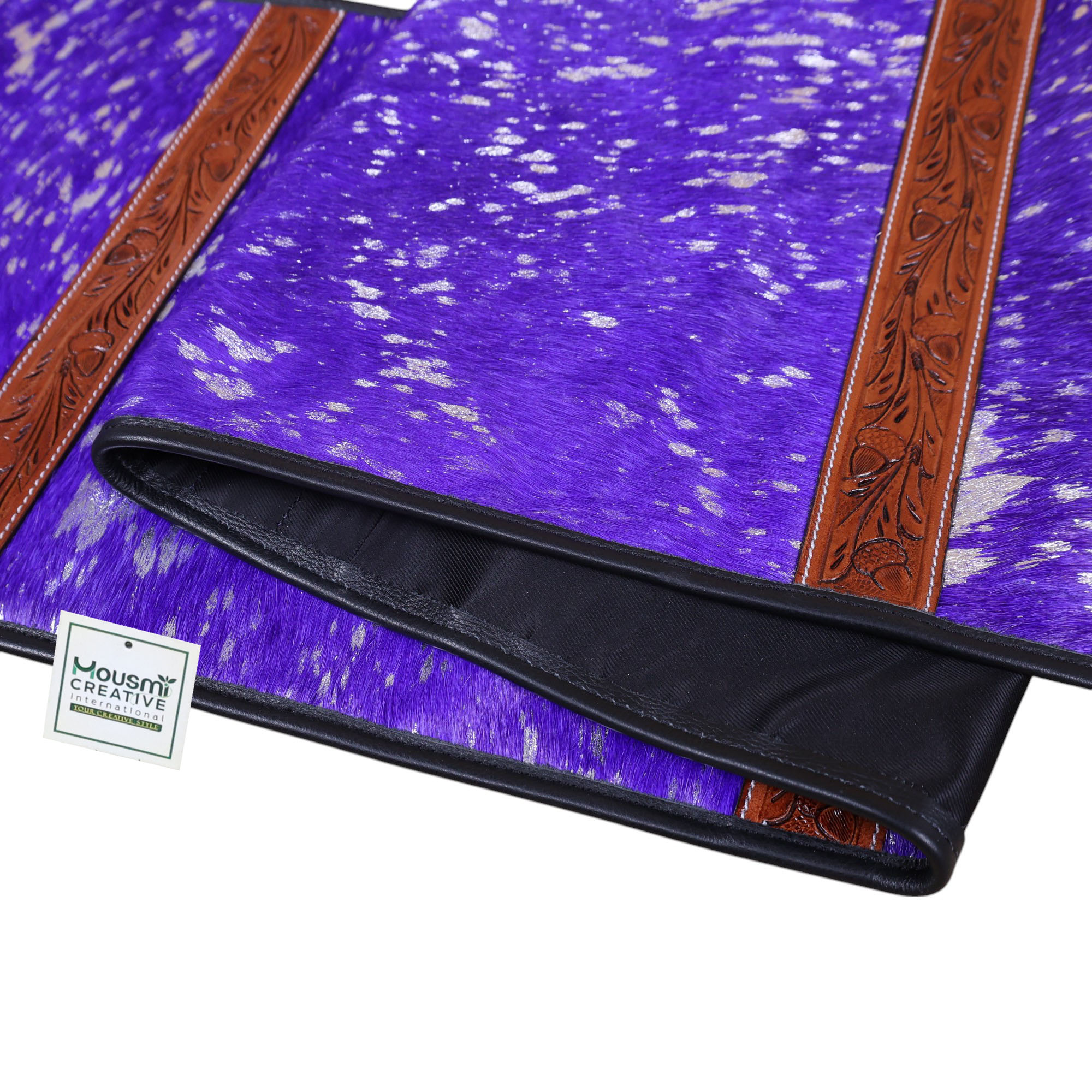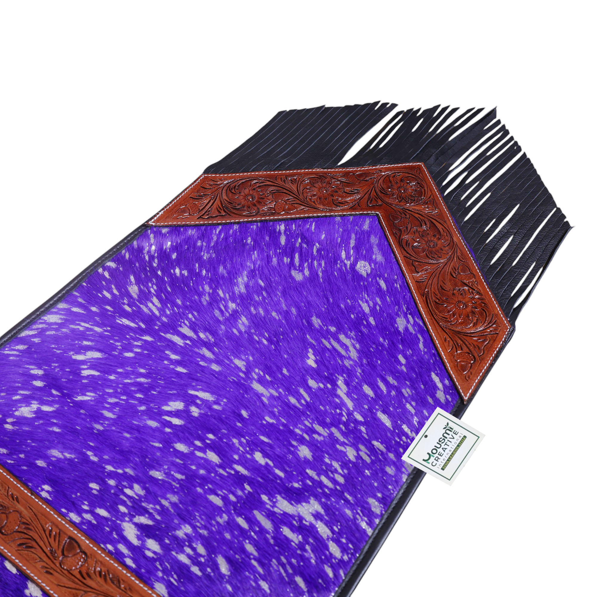 Decoration:Â Lather Fringe at Both Side Tip of the Corners.