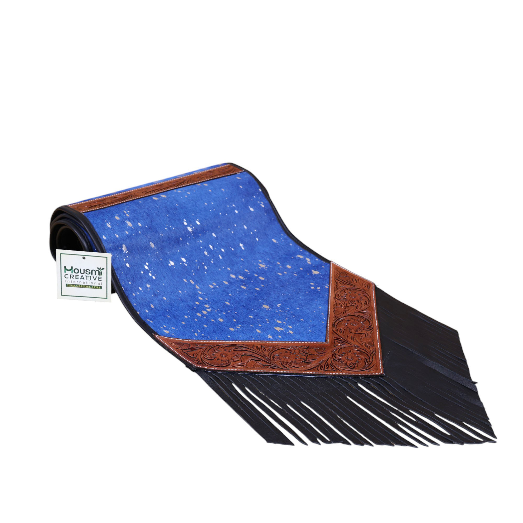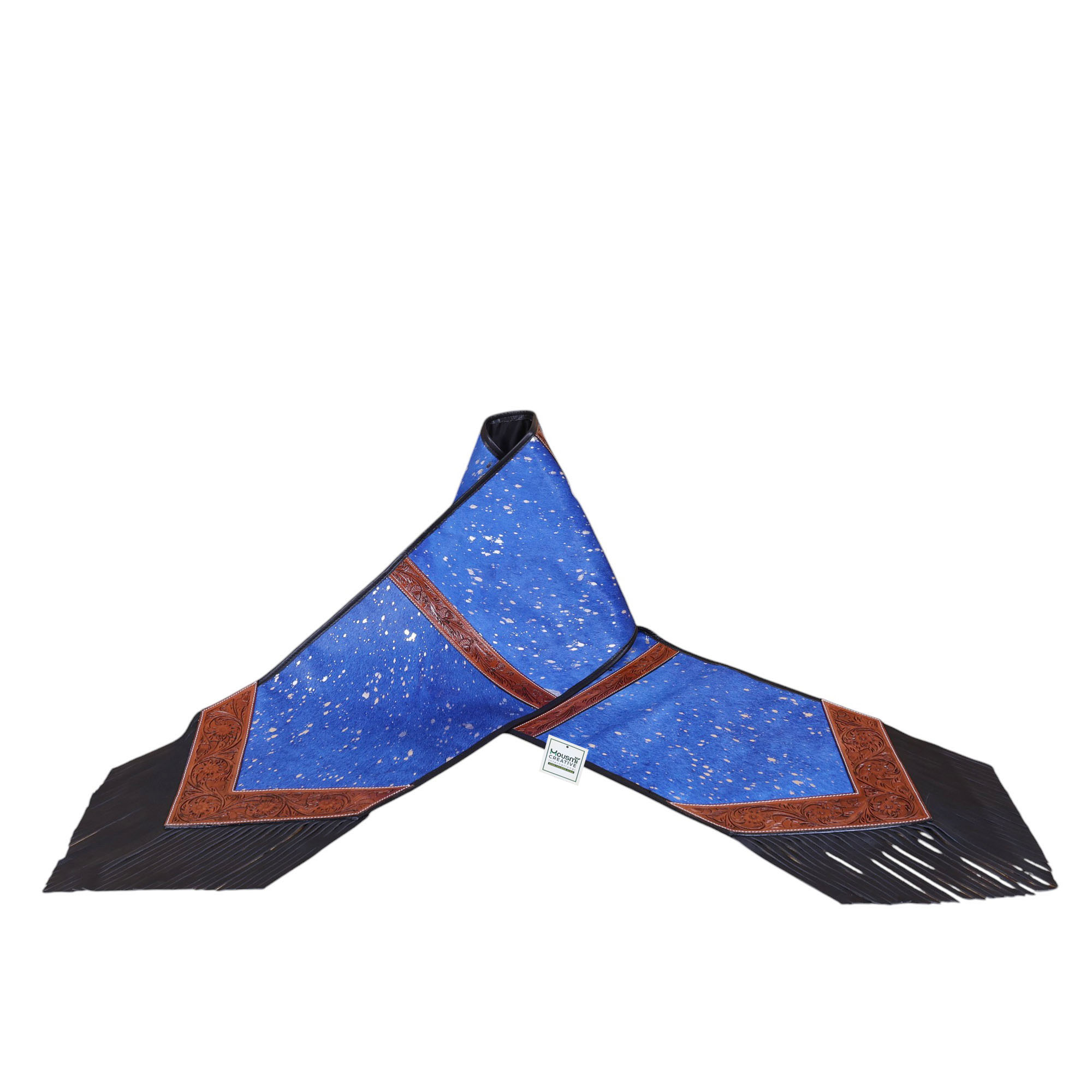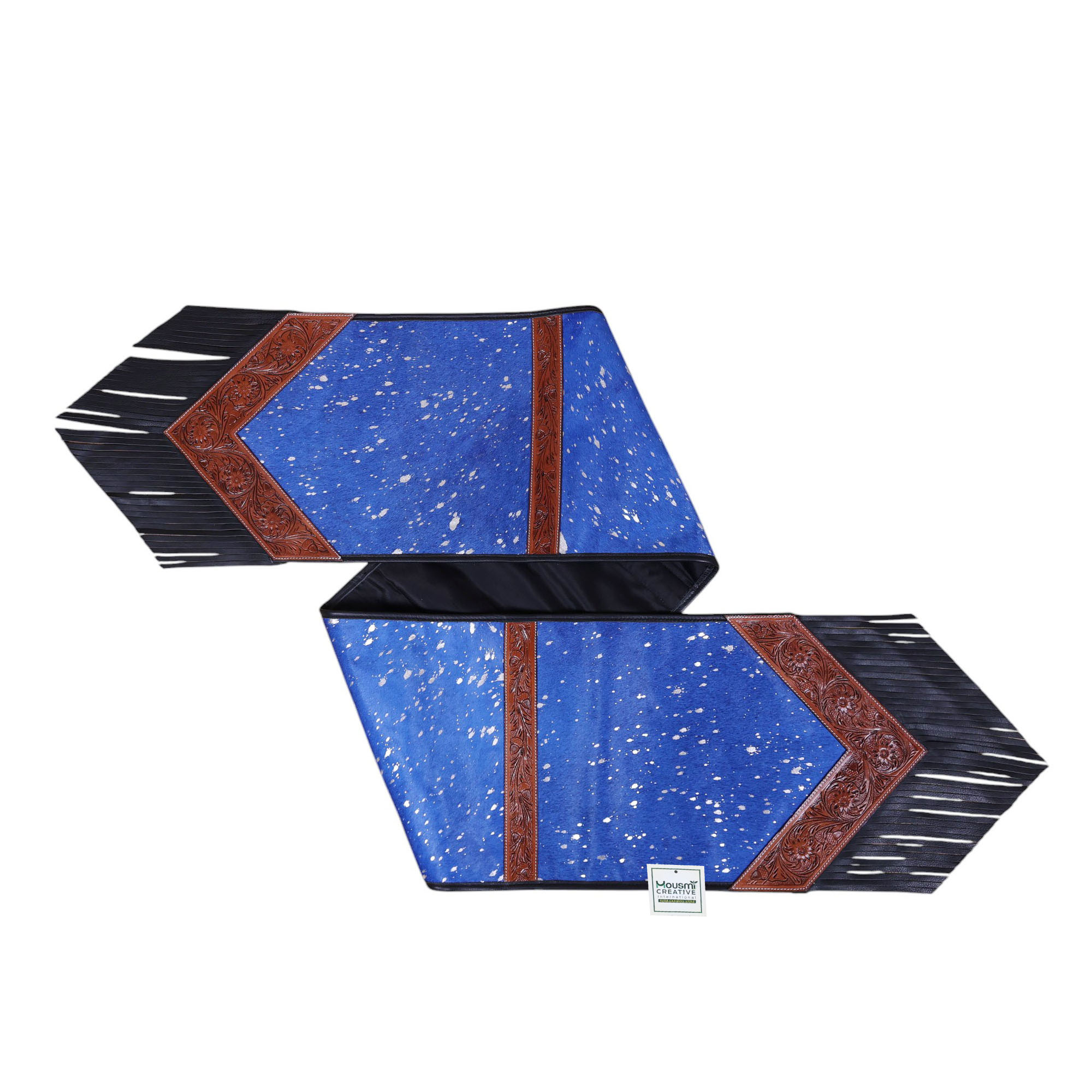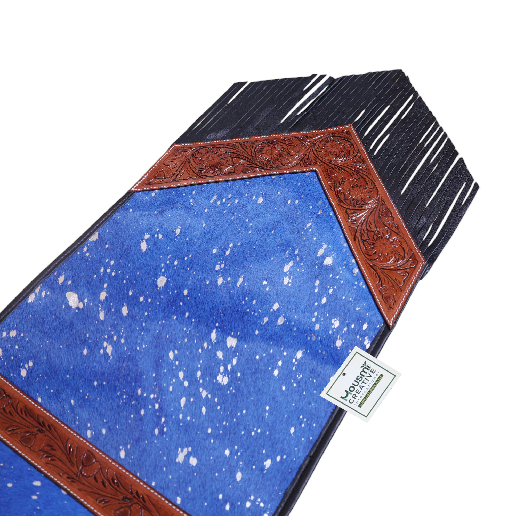 Decoration:Â Lather Fringe at Both Side Tip of the Corners.