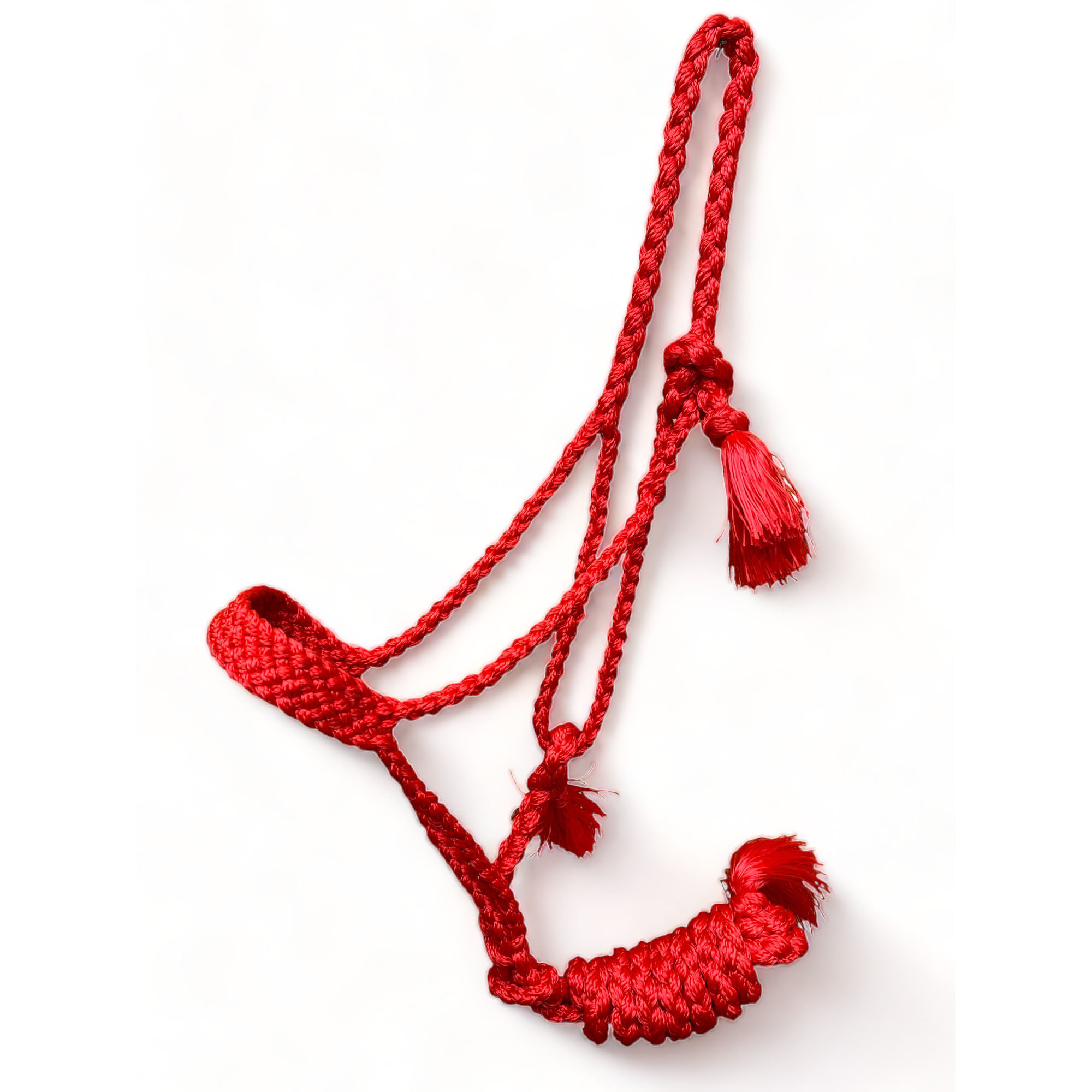 Horse Tack Braided Mule Tape Rope Halter With Extra Broad Noseband For Comfort and to Prevent Rubbing With Attached Lead Rope. This Mule Tape Rope Halter Provides a Premium Appearance to You and Your Horse too While Riding or Working.