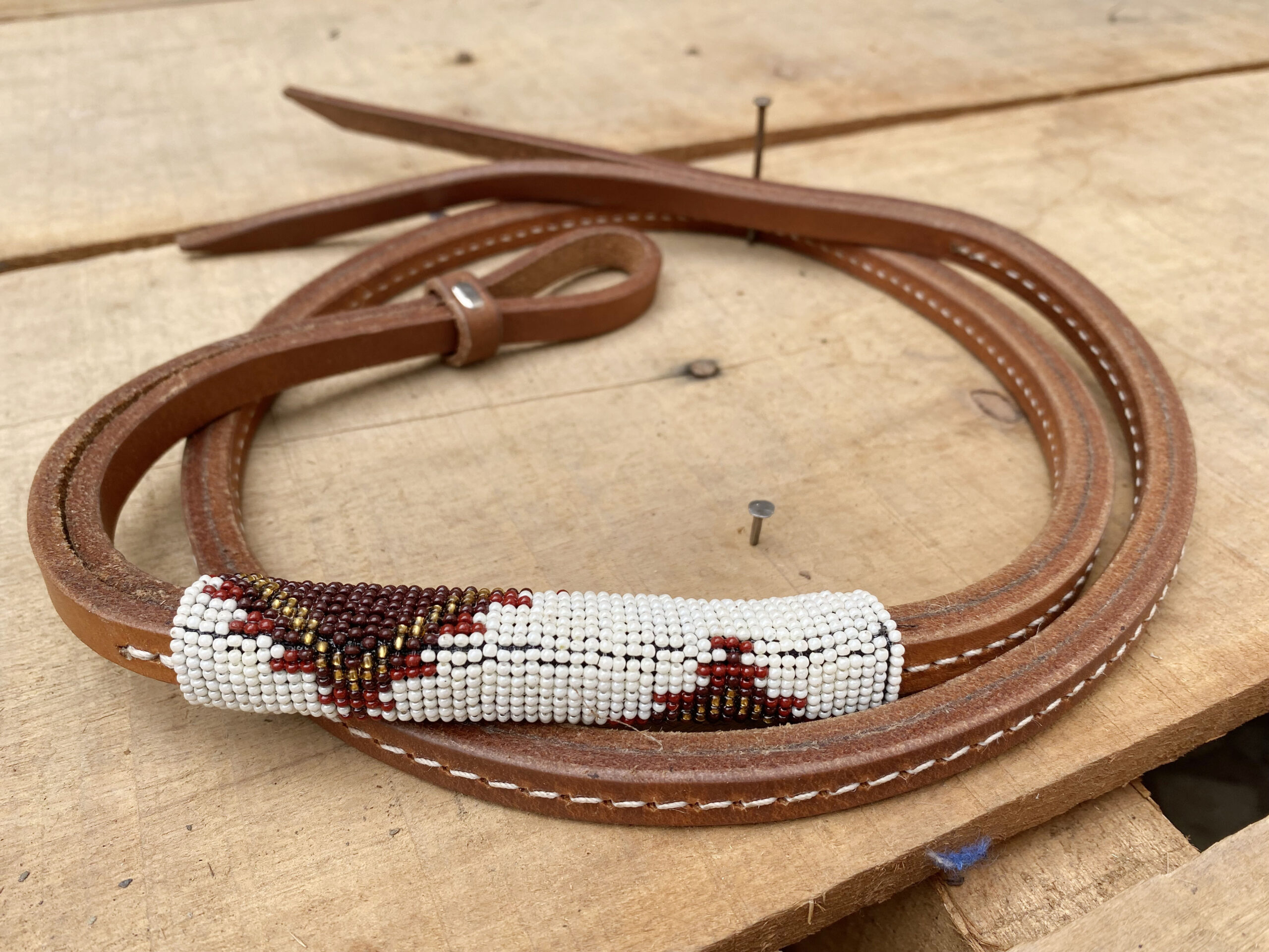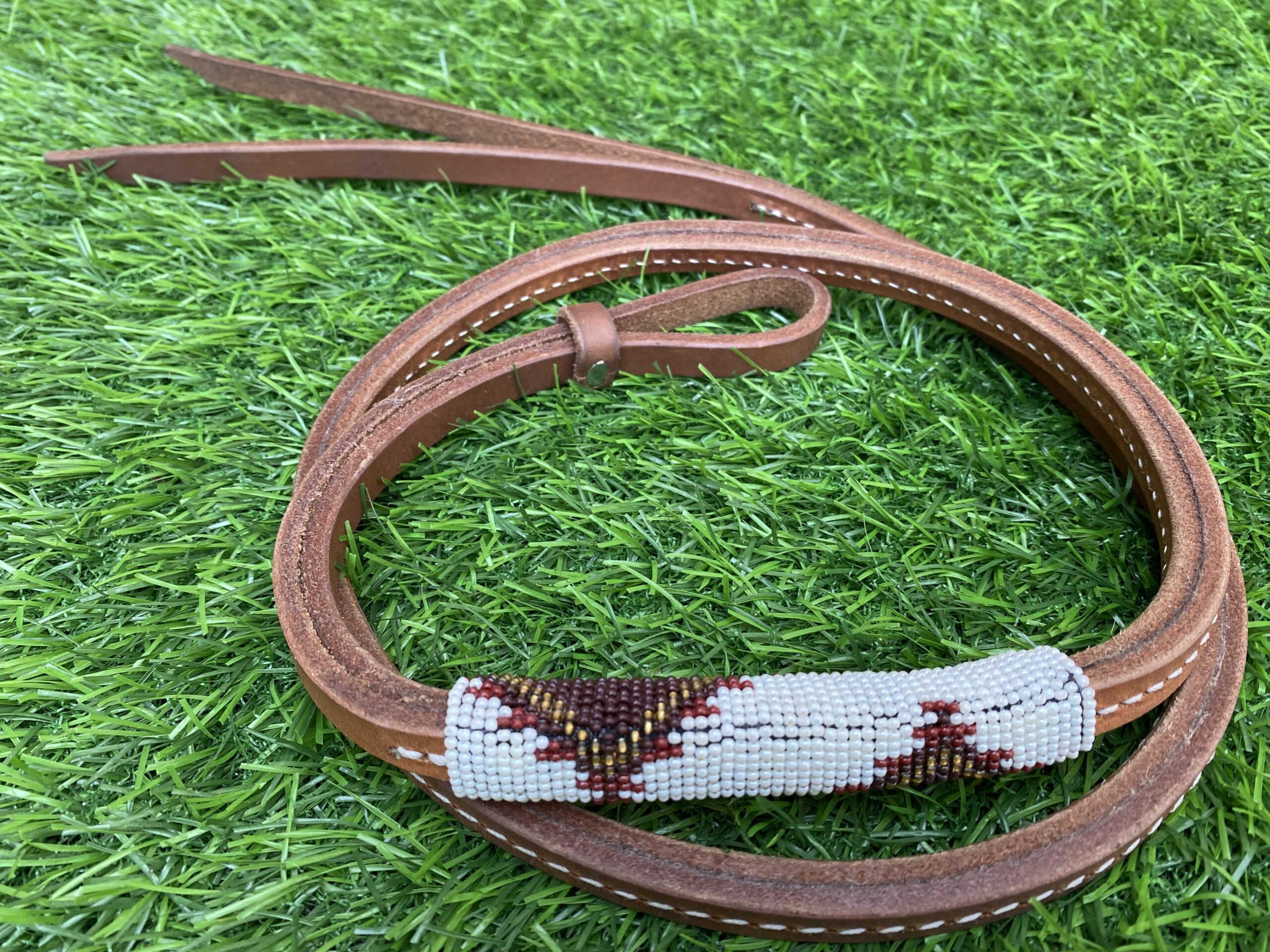 - Western Horse Beaded Leather Over and Under Whip.