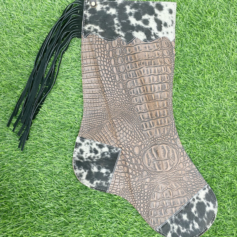 1. Genuine Cowhide Alligator Skin Texture Brown Leather Christmas Stocking For Christmas Tree/ Door/ Fire Place/ Decoration Hanging Stocking.