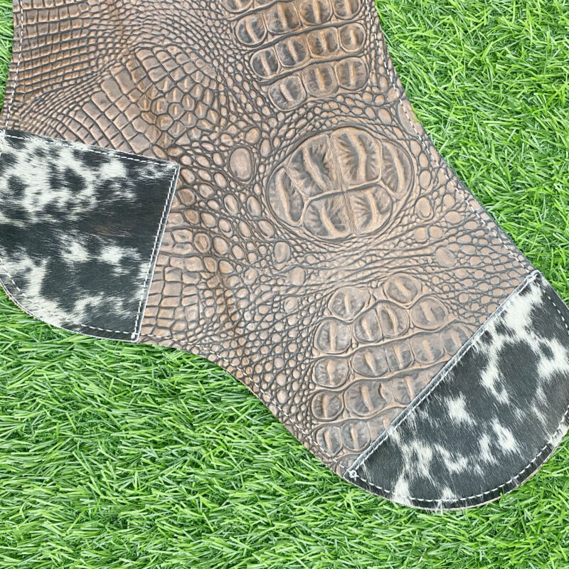 Leather stockings made with Real Alligator Skin Texture Brown Leather with black fringe, handcrafted by skilled artisans.