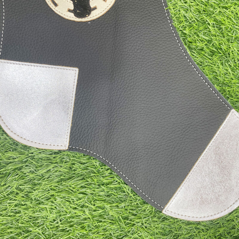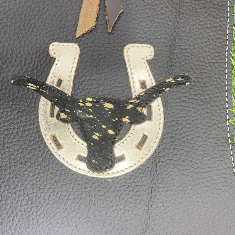 - Synthetic Leather Shocks Cuff/ Ankle & Toe Patches With Horse Leather Hoove Along With Bull Head Patch.
