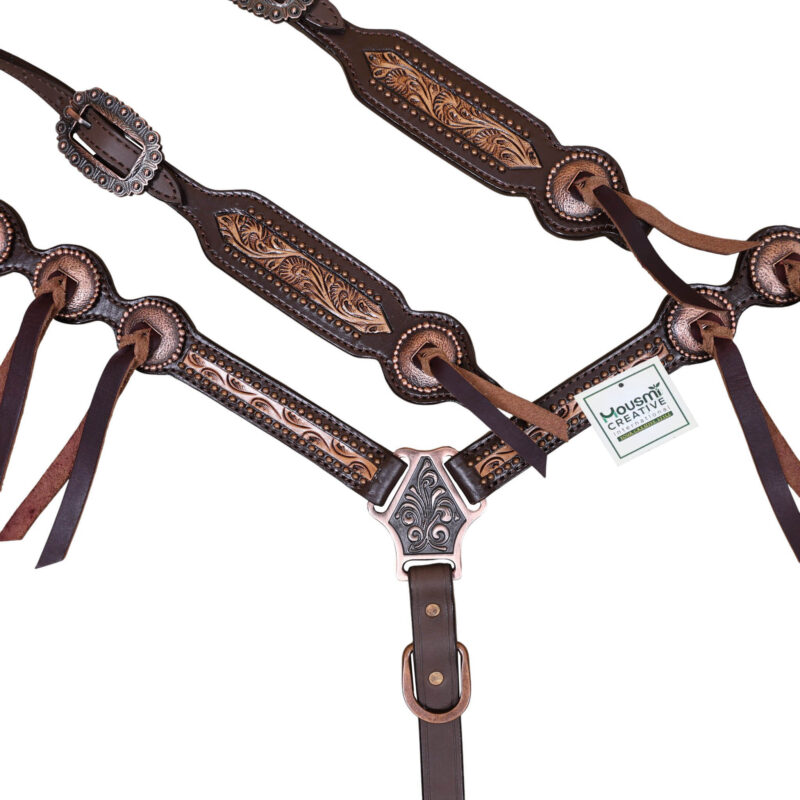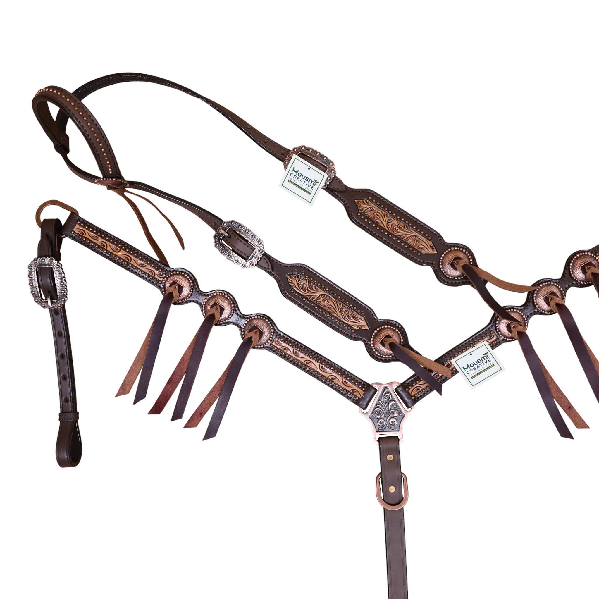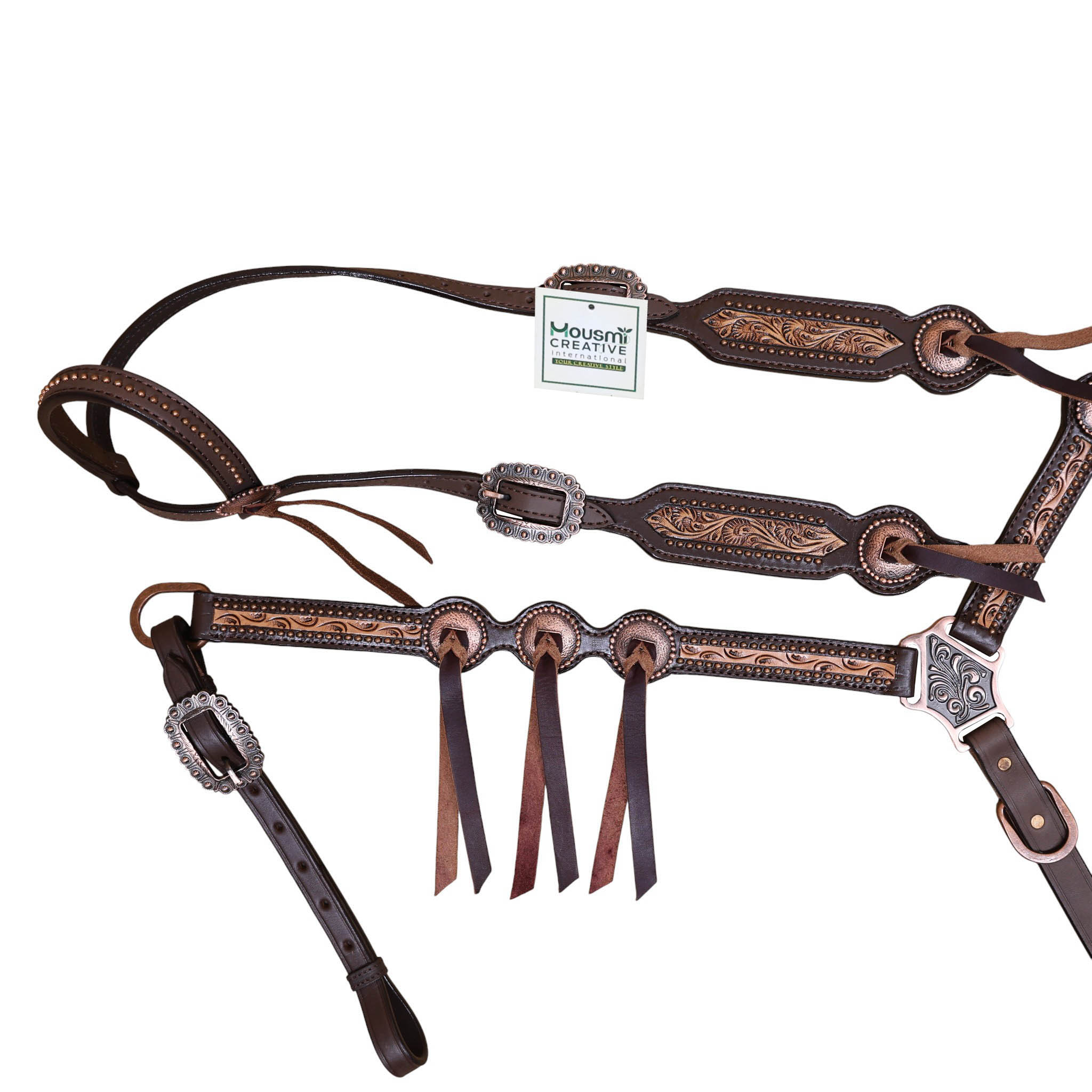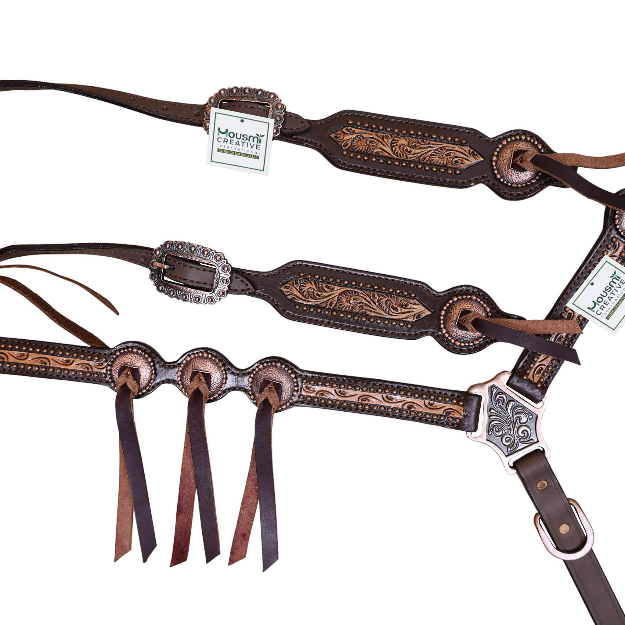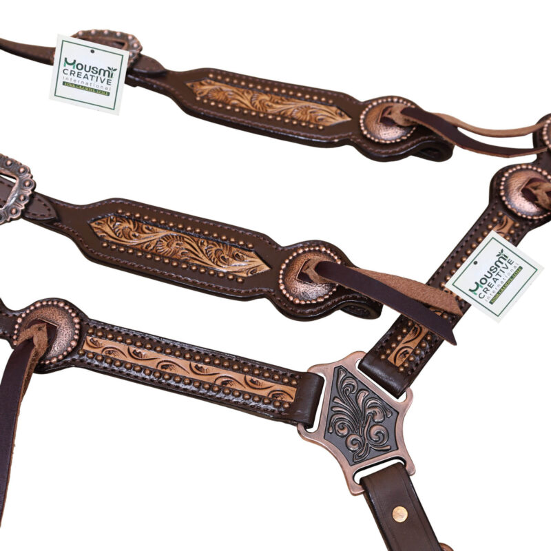Western Leather Headstall and Breast Collar tack Set by Manufacturer and exporter of leather equestrian products. Master of handcrafting and headstall set, having a team of designers and the articians in sampling.