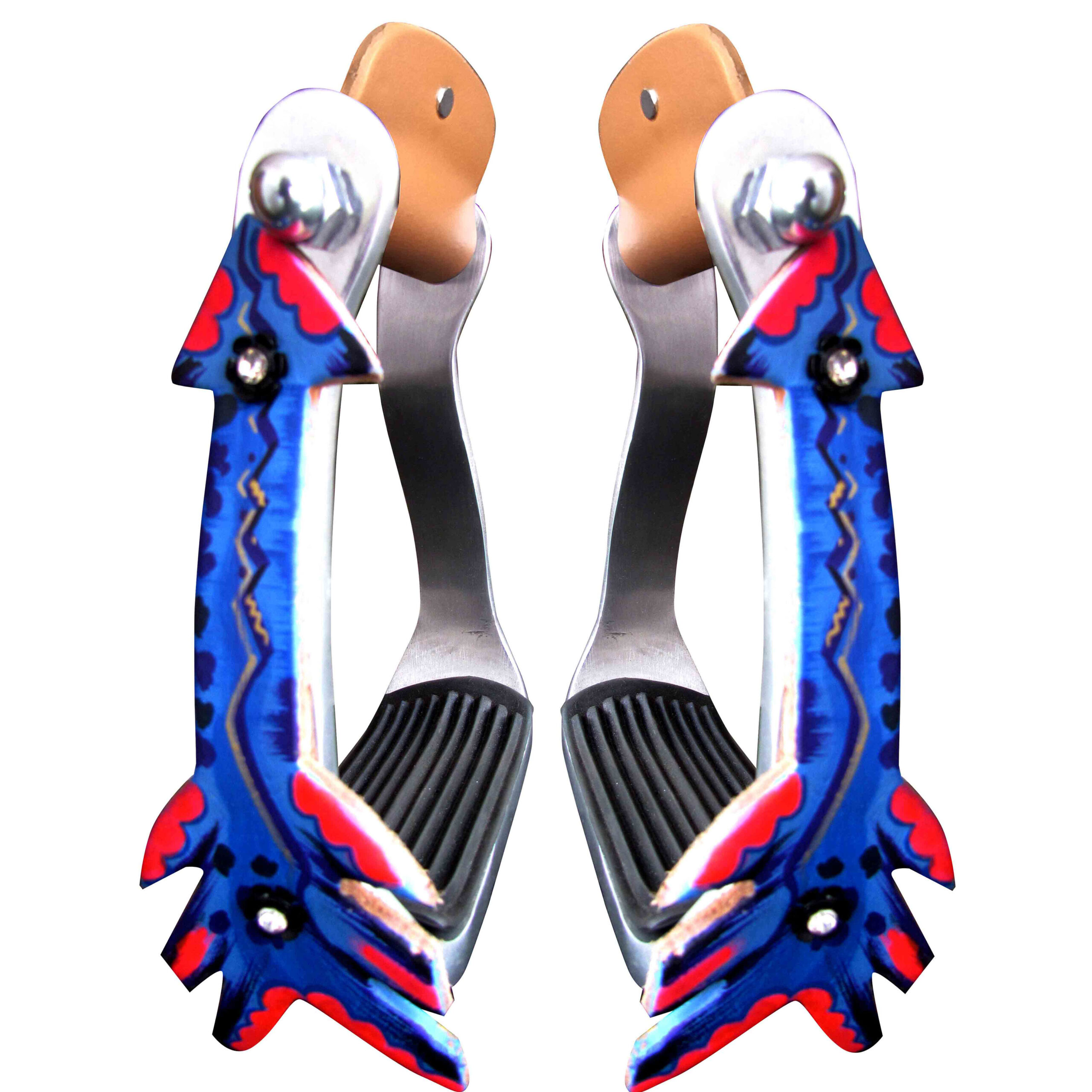 Western Equestrian Horse Riding Lightweight Aluminium Stirrups. This Offset Aluminium Stirrups are Decorated With Hand Painted Slogans and Illustrations and have Anti Slip Black Rubber Treads. Choose us for Exceptional Craftsmanship, A Commitment to Quality and Personalized Customer Service.