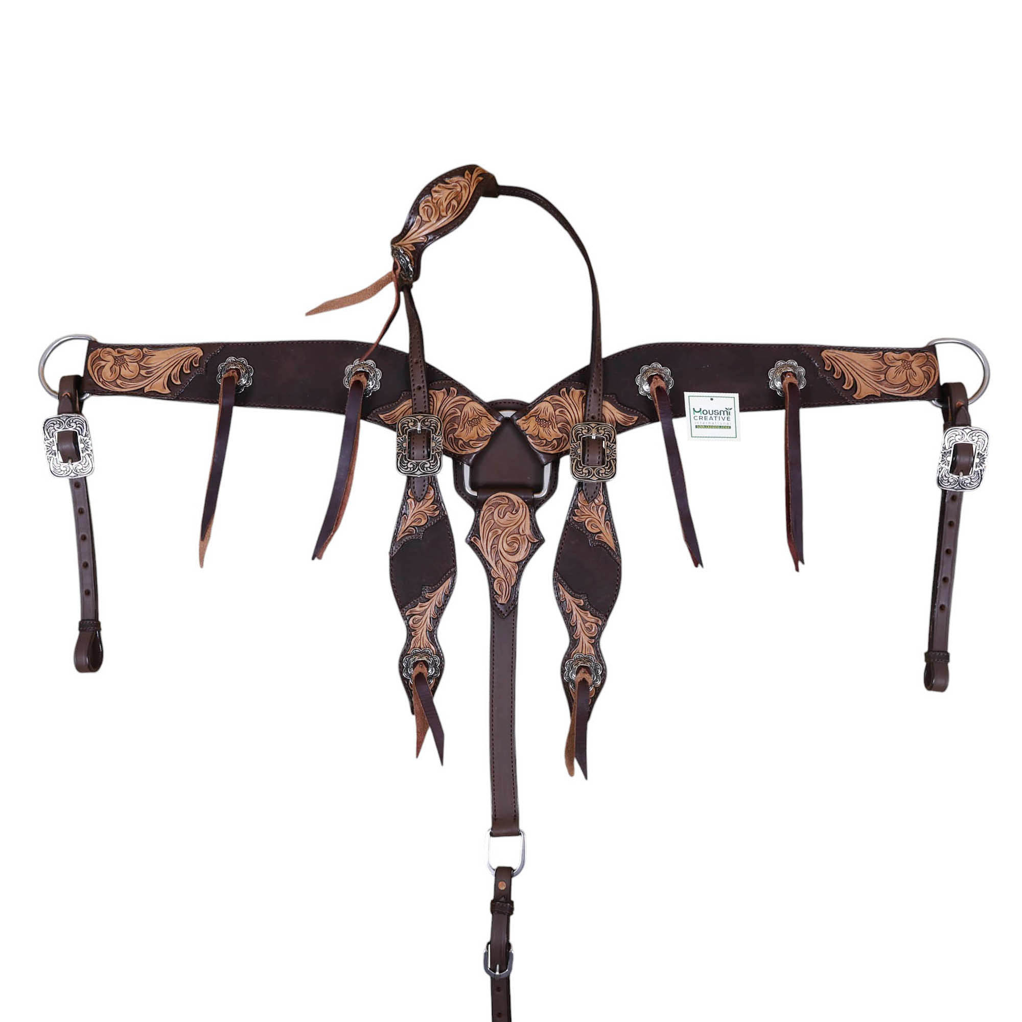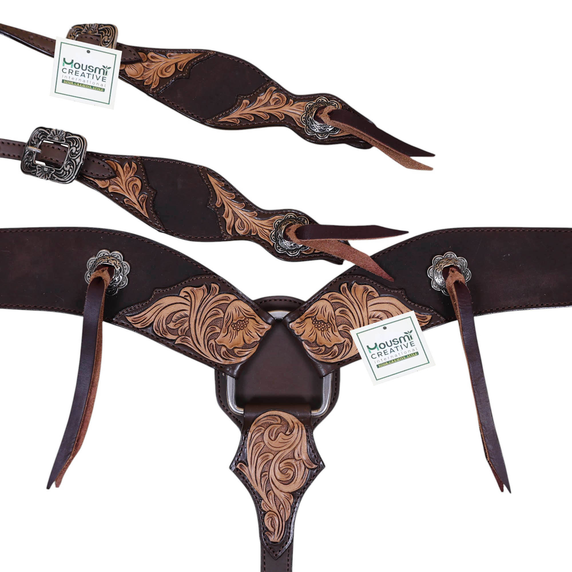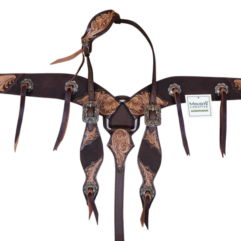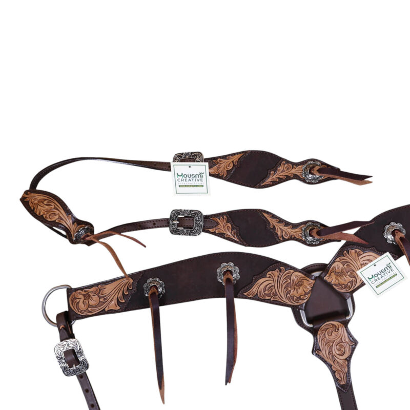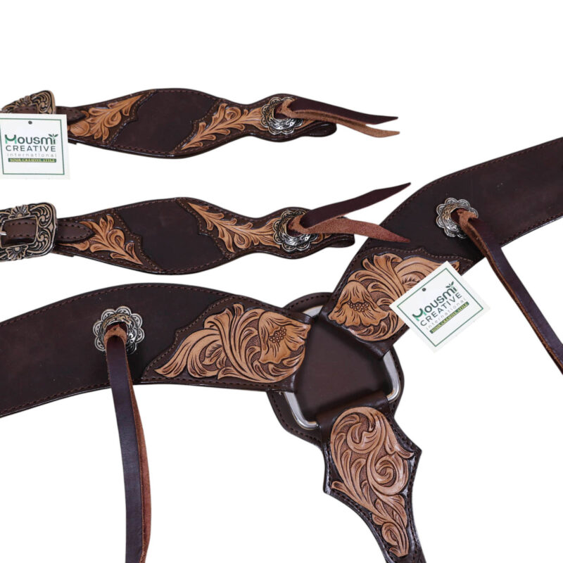 Western Leather Headstall and Breast Collar tack Set by Manufacturer and exporter of leather equestrian products. Master of handcrafting and headstall set, having a team of designers and the articians in sampling.