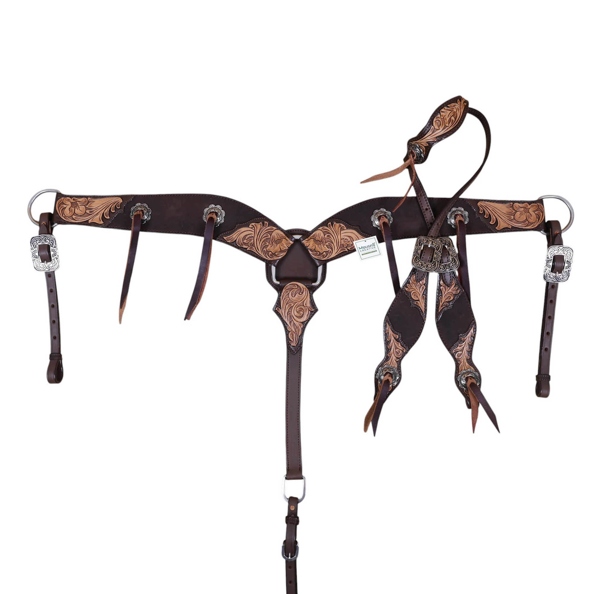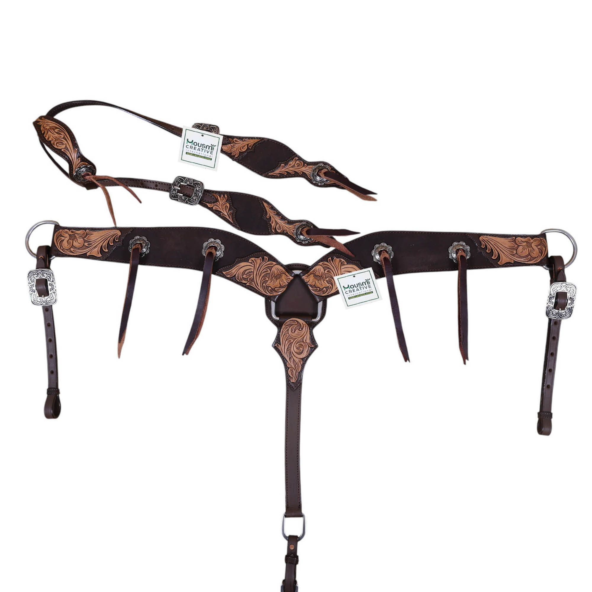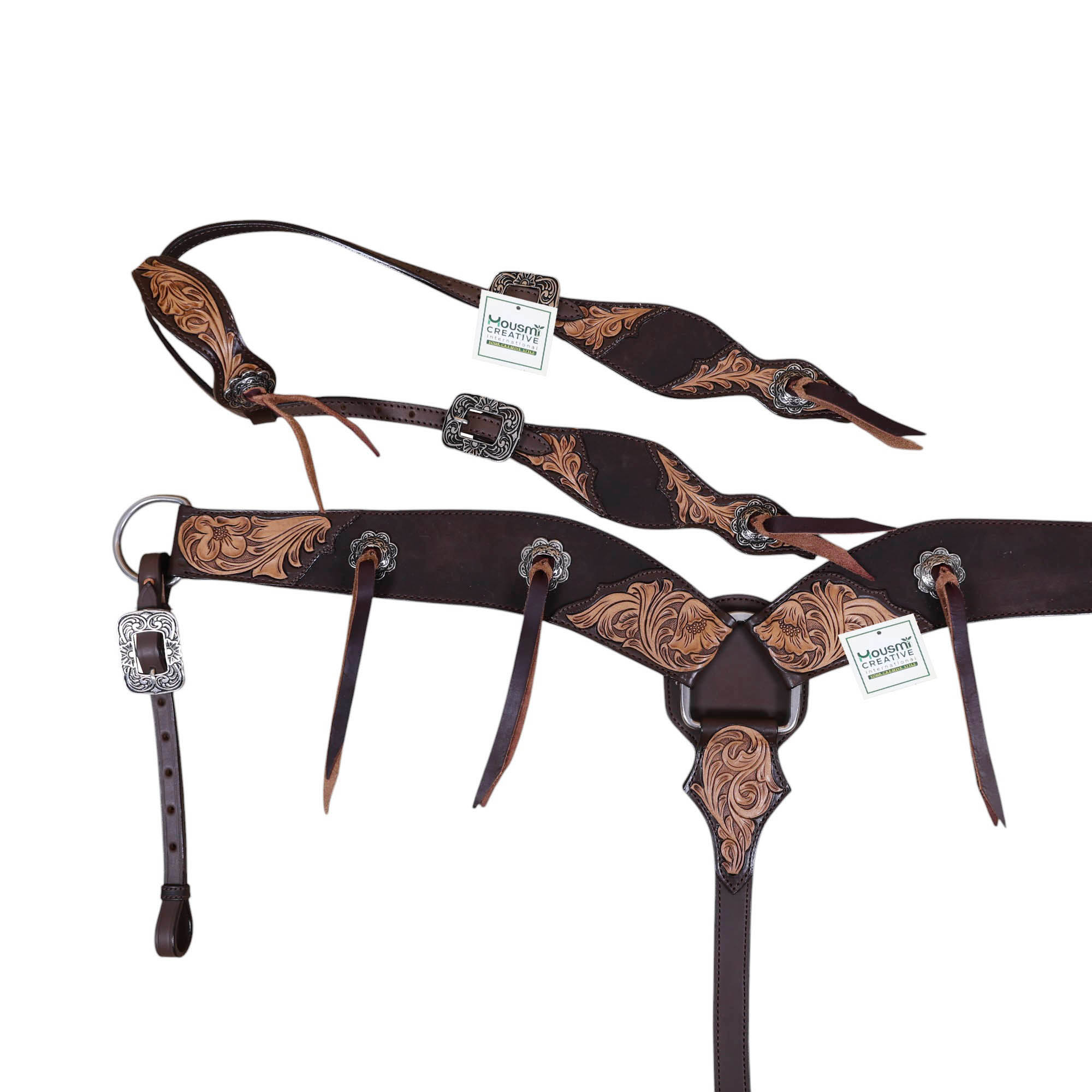 Western Leather Headstall and Breast Collar tack Set by Manufacturer and exporter of leather equestrian products. Master of handcrafting and headstall set, having a team of designers and the articians in sampling.