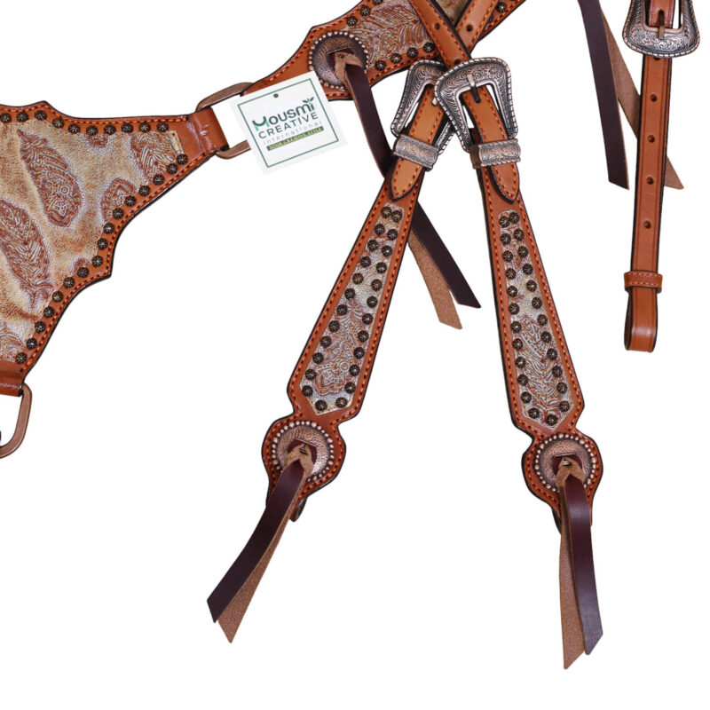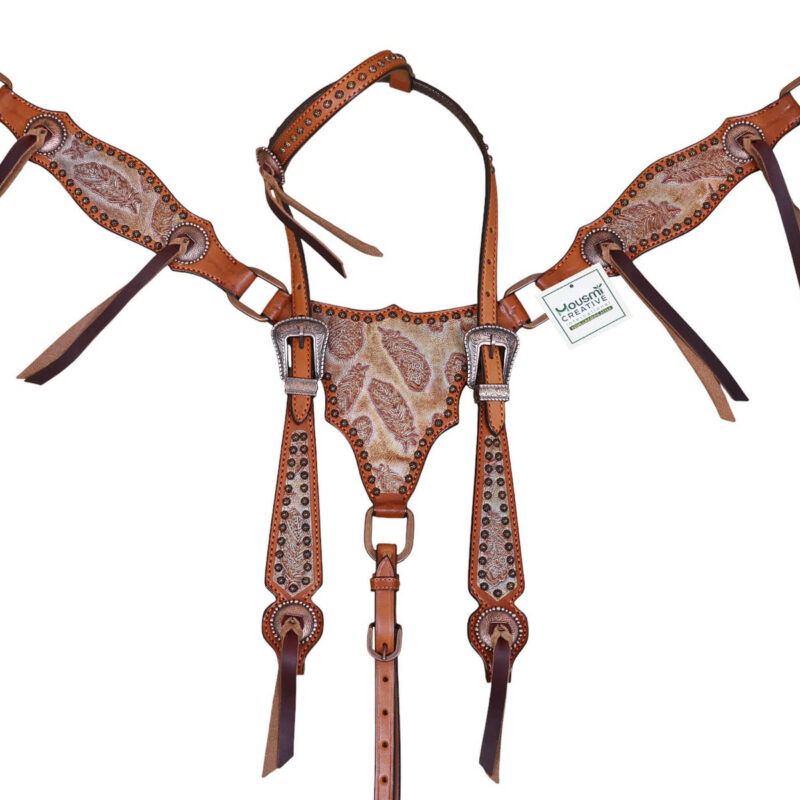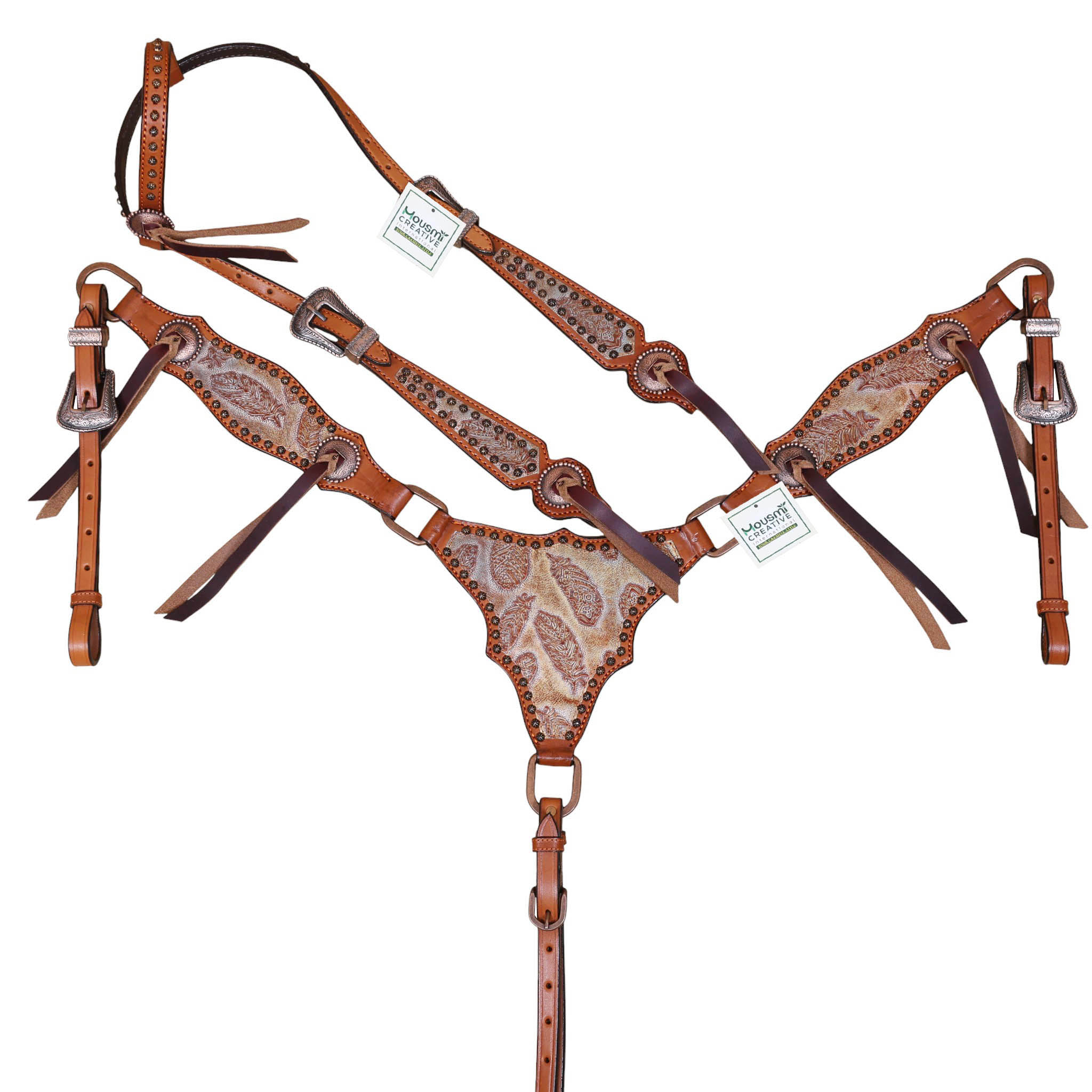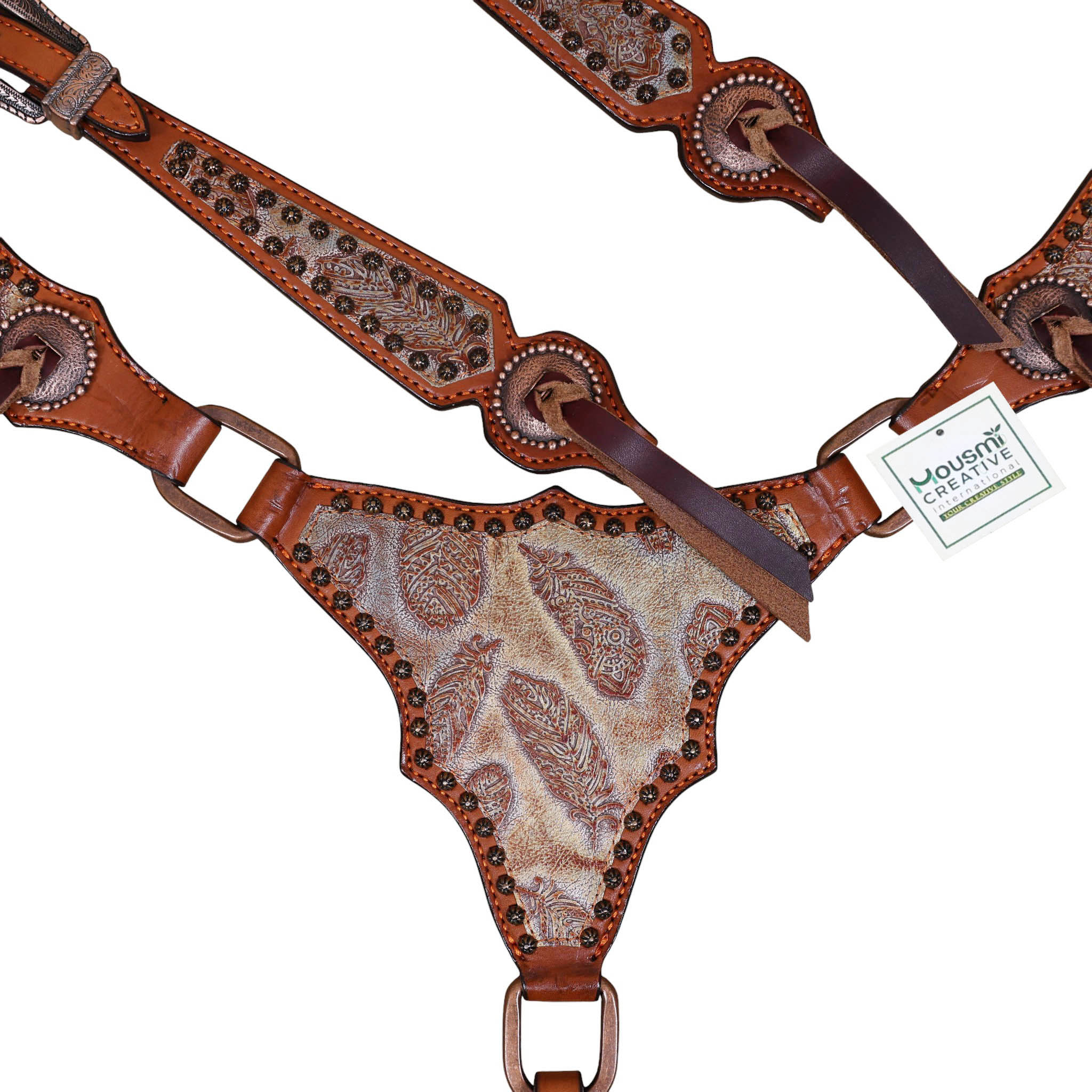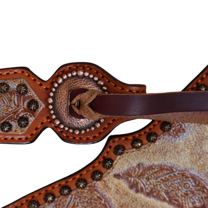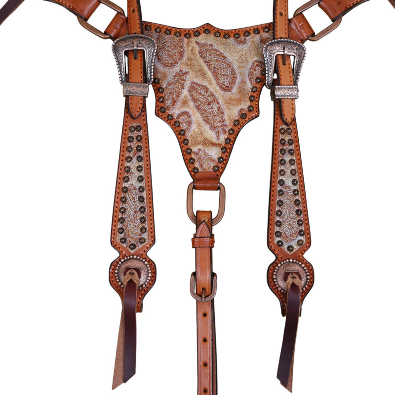 Western Leather Headstall Breast Collar Tack Set:Western Leather Headstall Breast Collar Tack Set: Copper Feather Embossed (HSBM 114481)