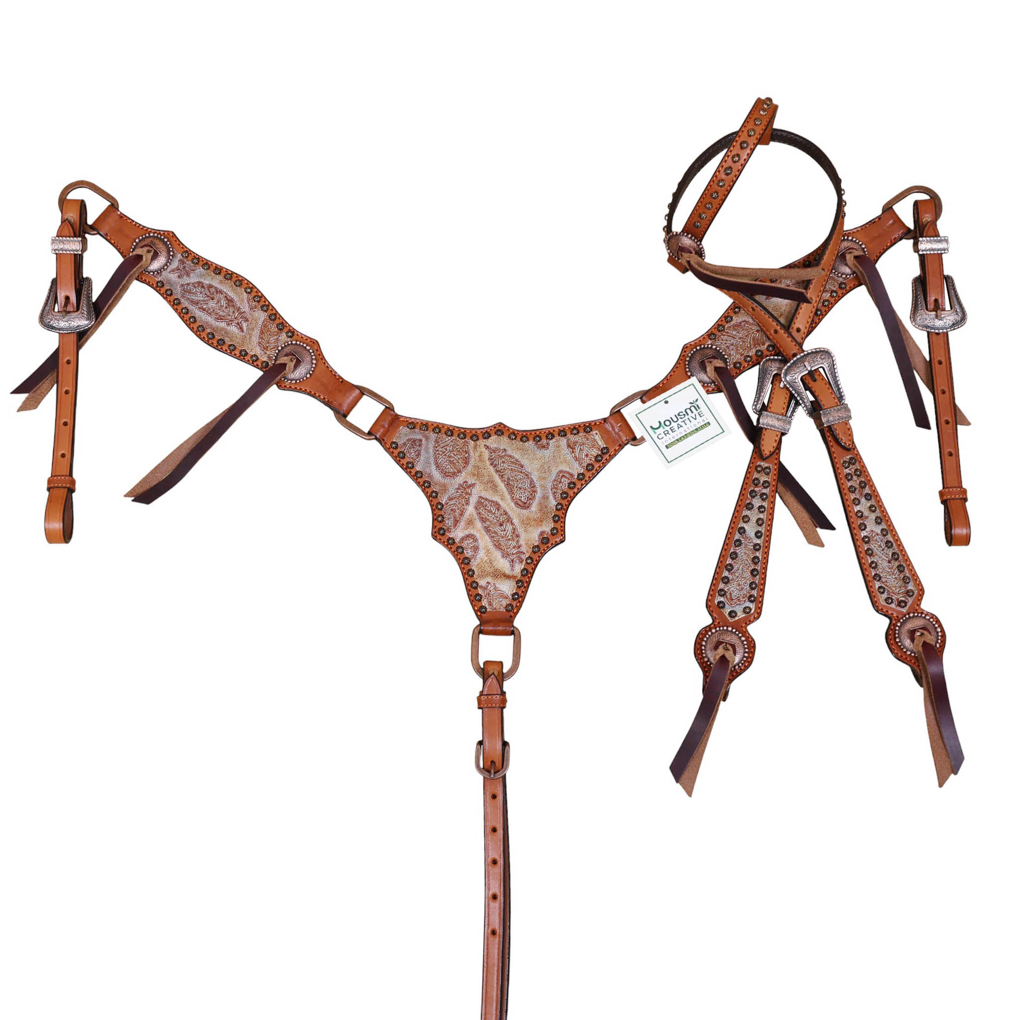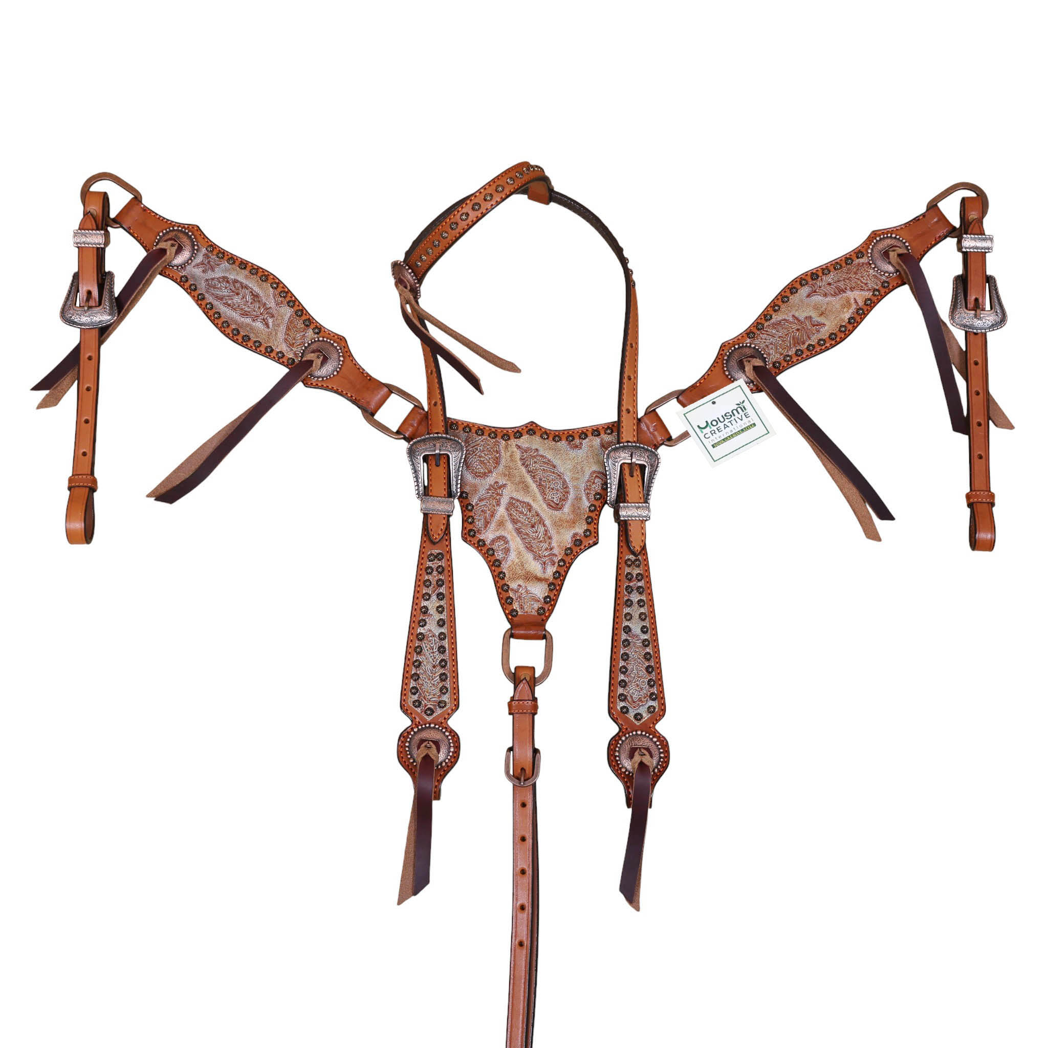 Western Leather Headstall and Breast Collar tack Set by Manufacturer and exporter of leather equestrian products. Master of handcrafting and headstall set, having a team of designers and the articians in sampling.