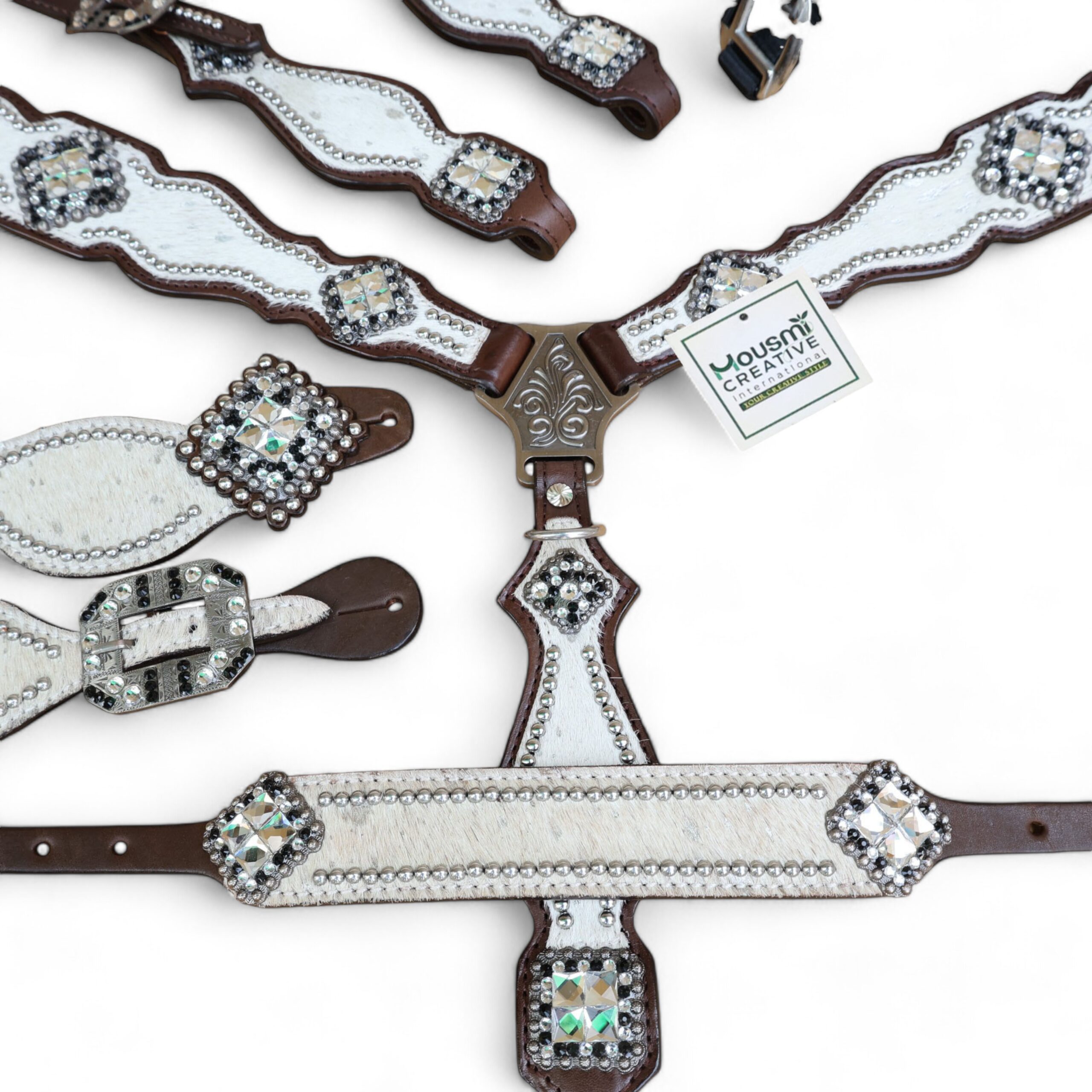 • Acid Wash White Hair on Genuine Cowhide Horse Tack Set.