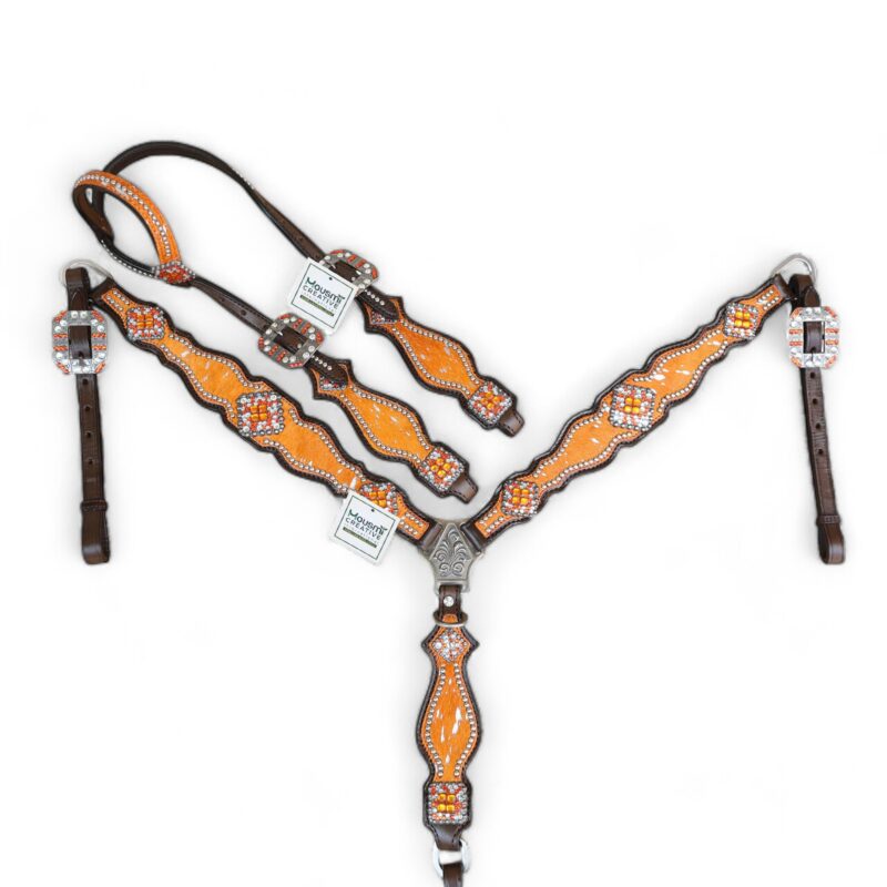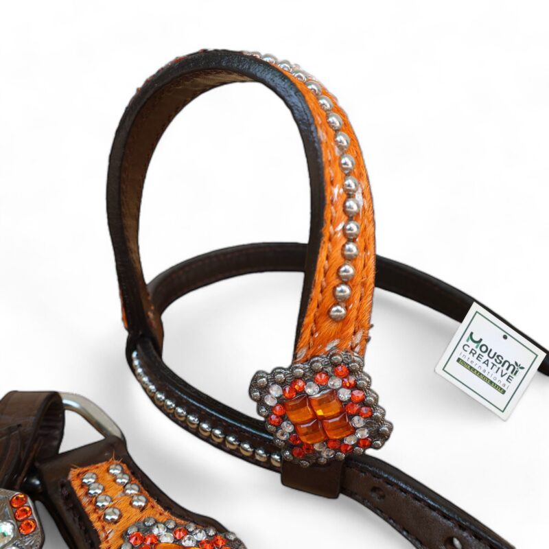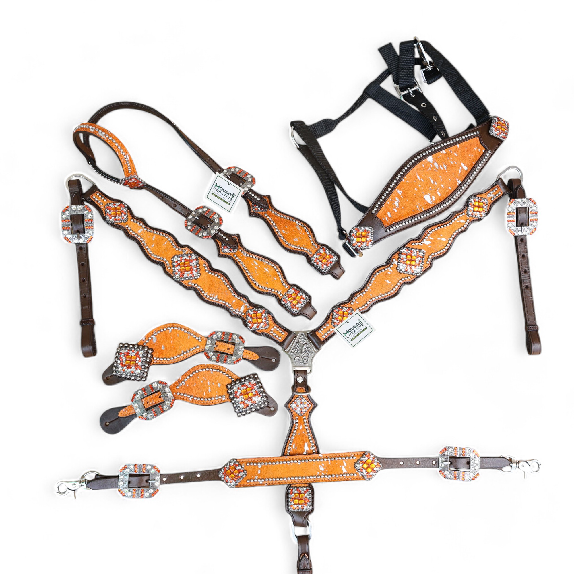 • Acid Wash Orange Hair on Genuine Cowhide Horse Tack Set.