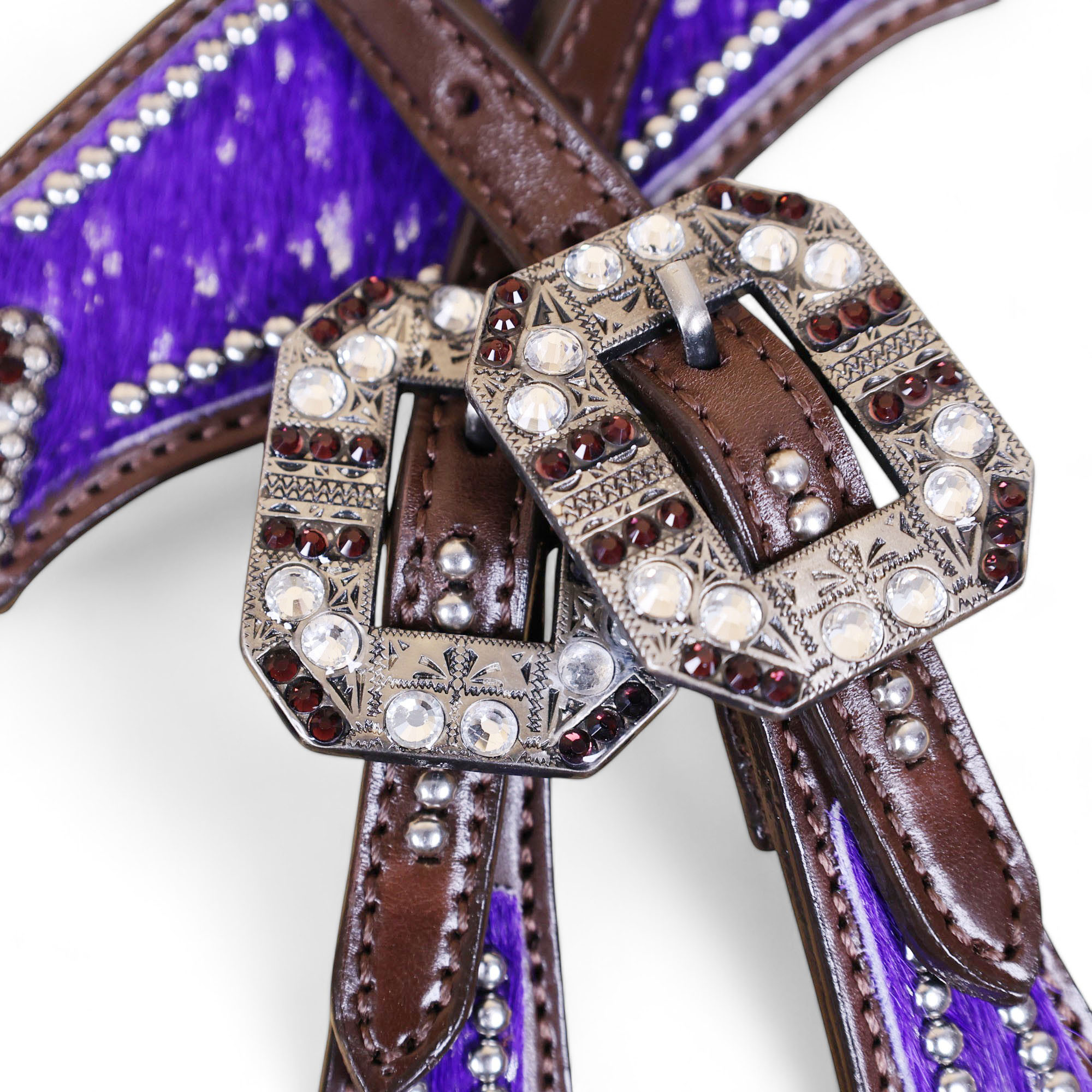 - Acid Wash Purple Hair on Genuine Cowhide Leather Horse Tack Set.
