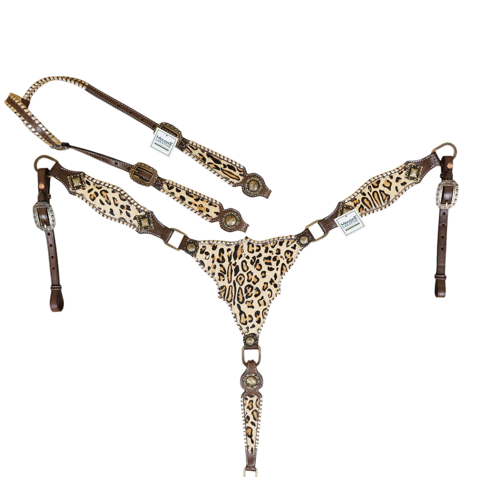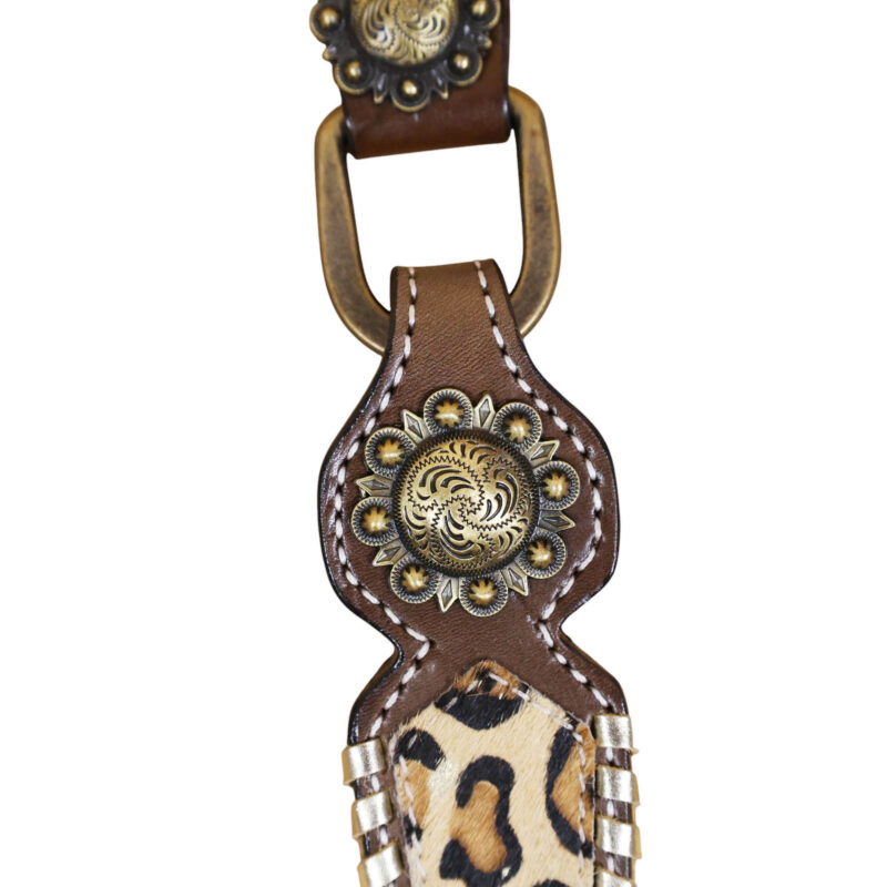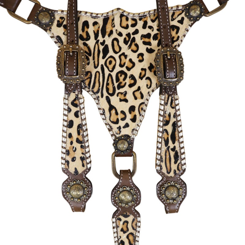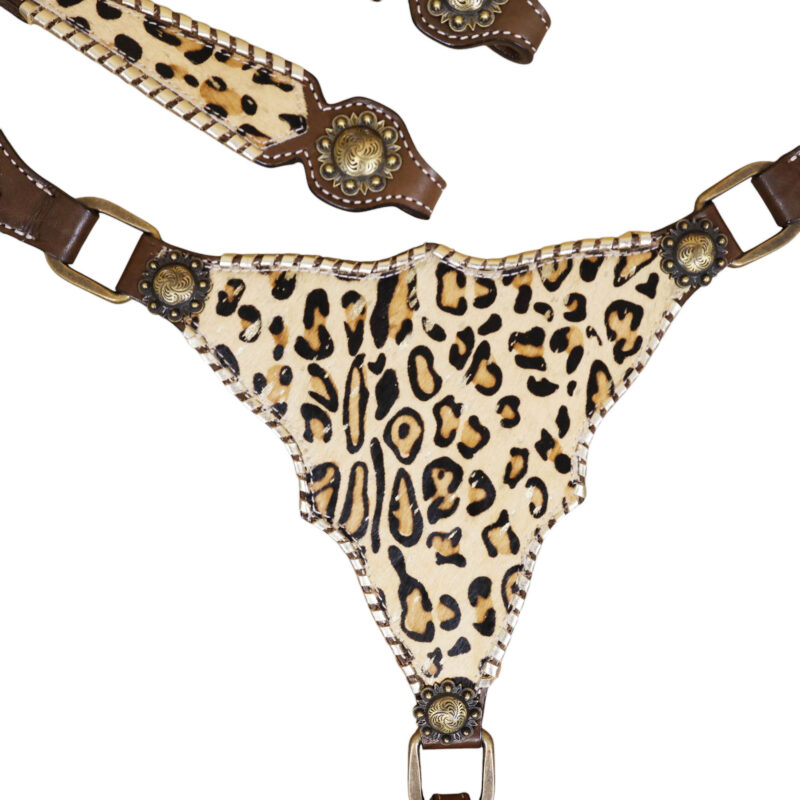 - Leopard Skin Textured Printed Leather Inlay Overlay Leather Lace Braided Headstall Matching Breast Collar Tack Set.