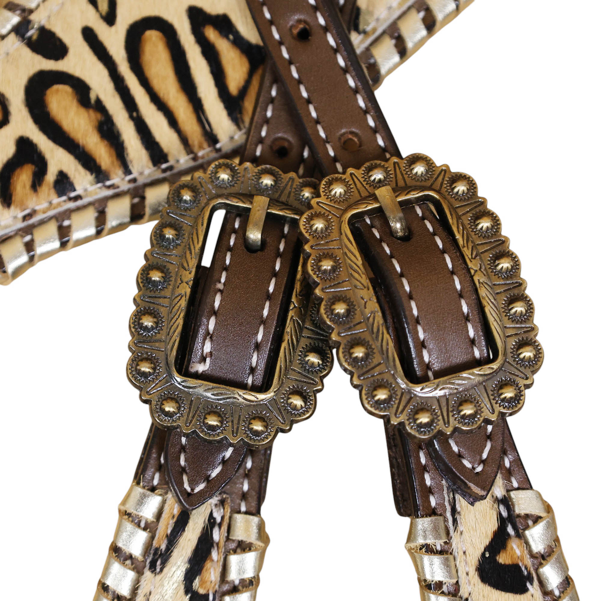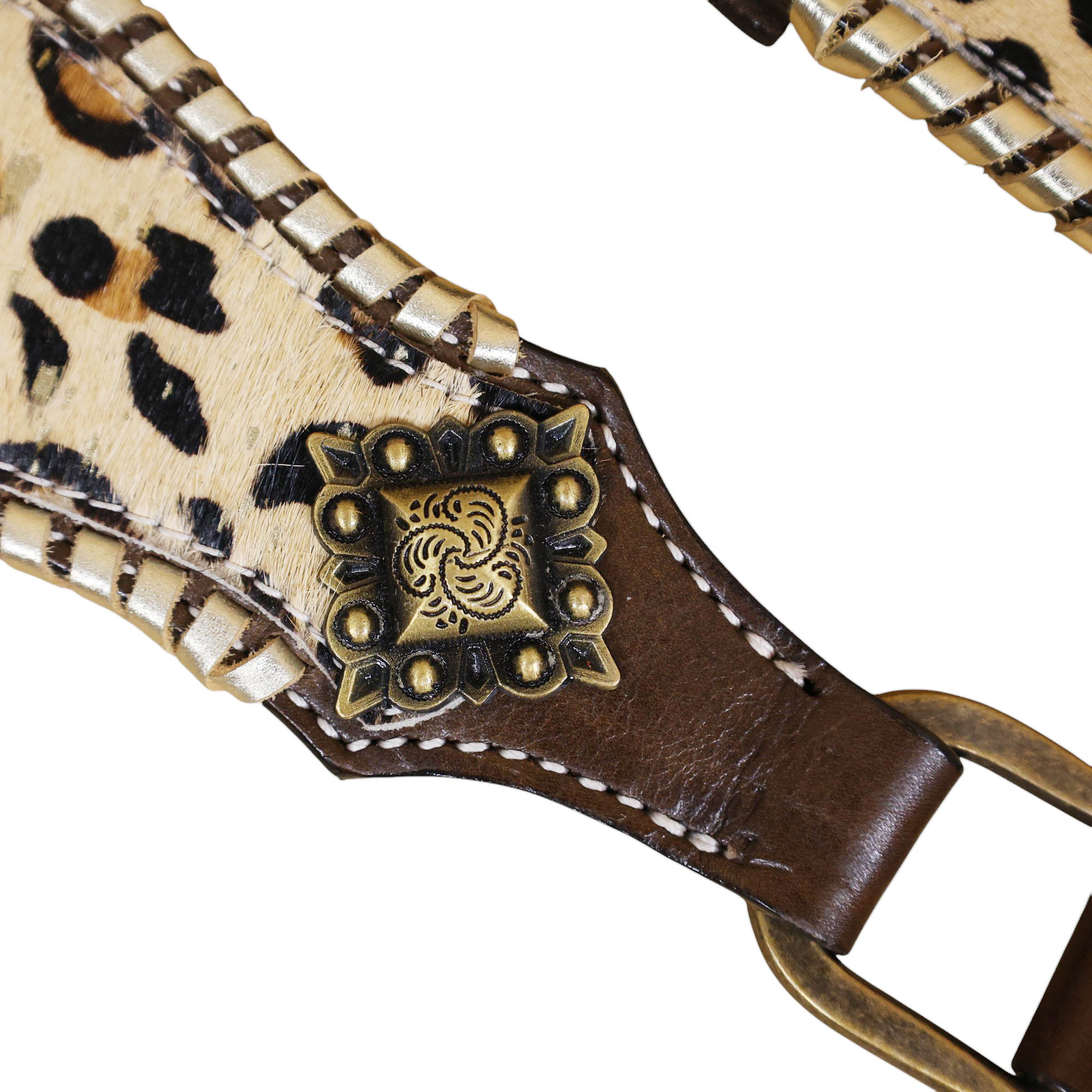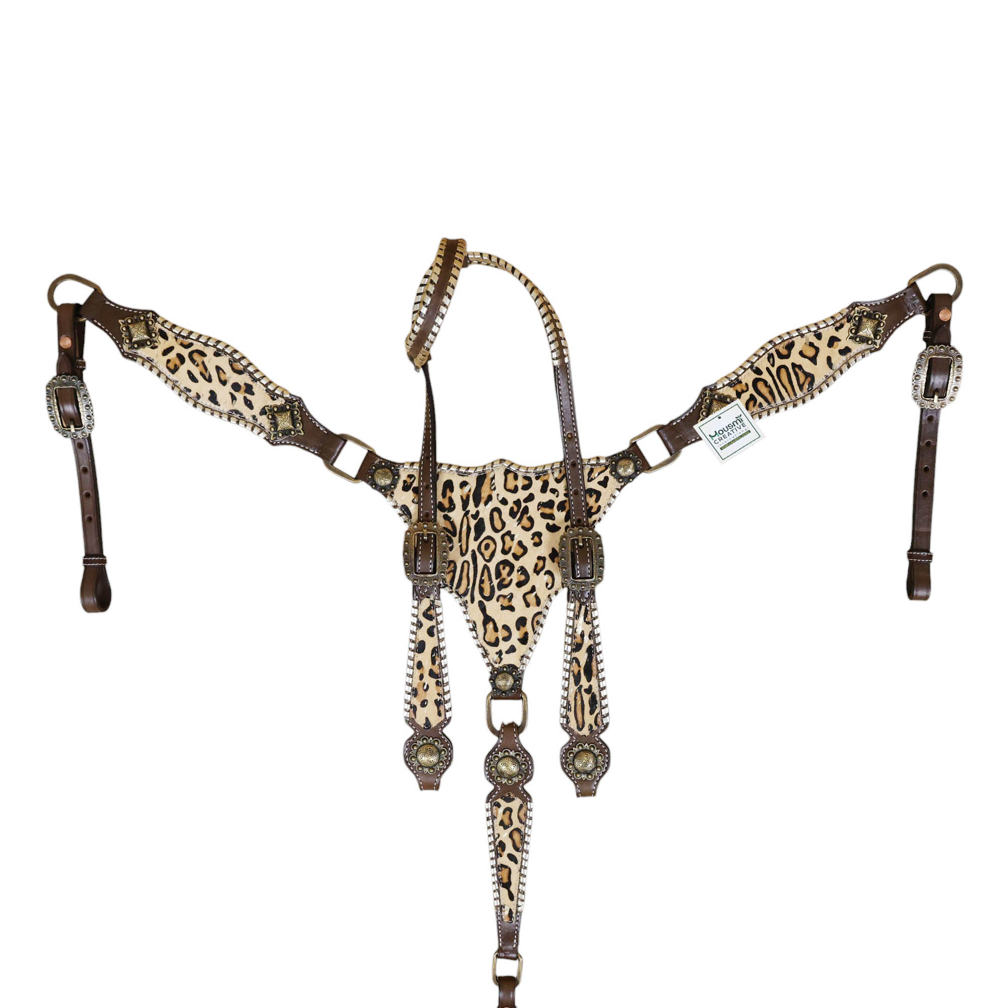 - Leopard Skin Textured Printed Leather Inlay Overlay Leather Lace Braided Headstall Matching Breast Collar Tack Set.