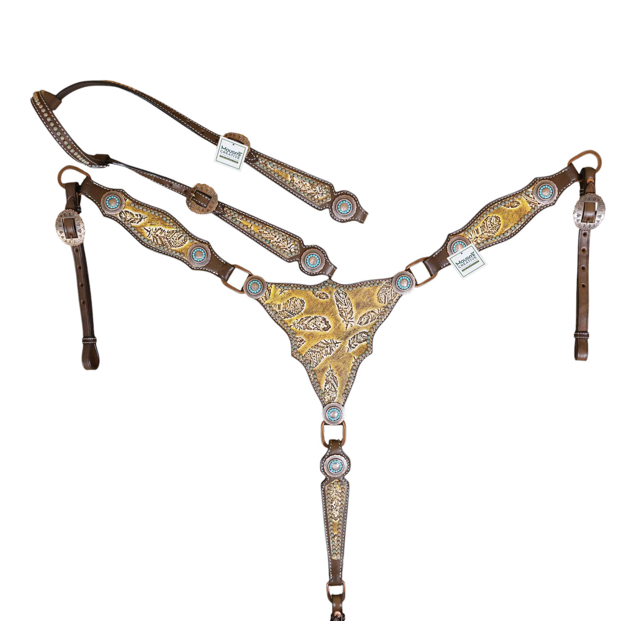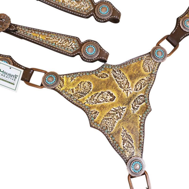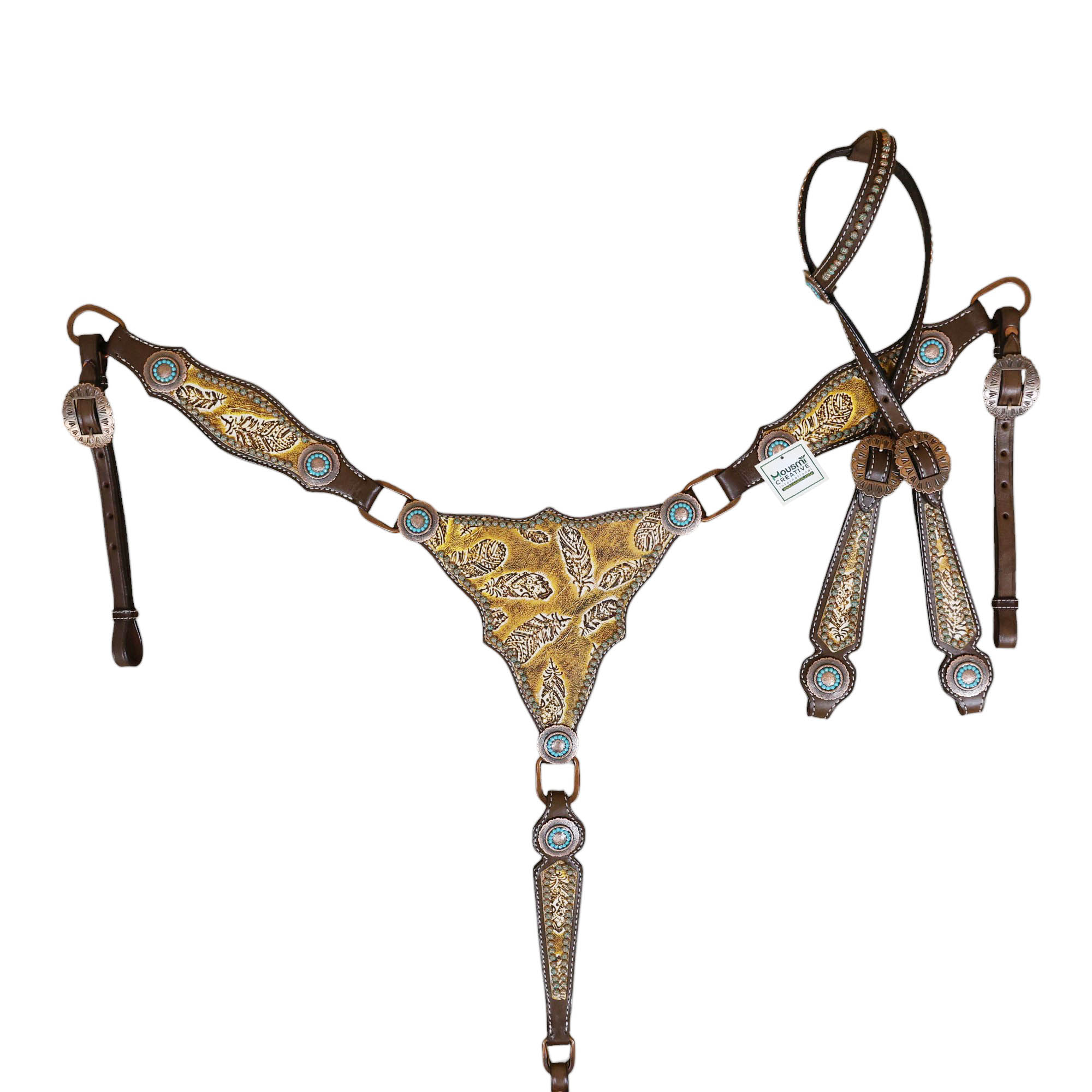 - Feather Textured Headstall Matching Breast Collar Tack Set.