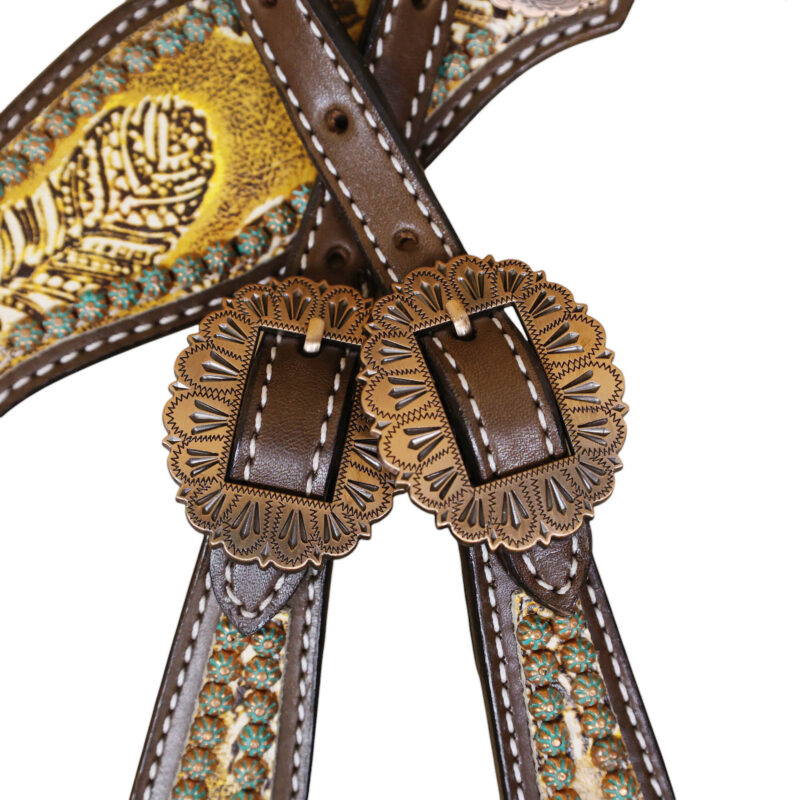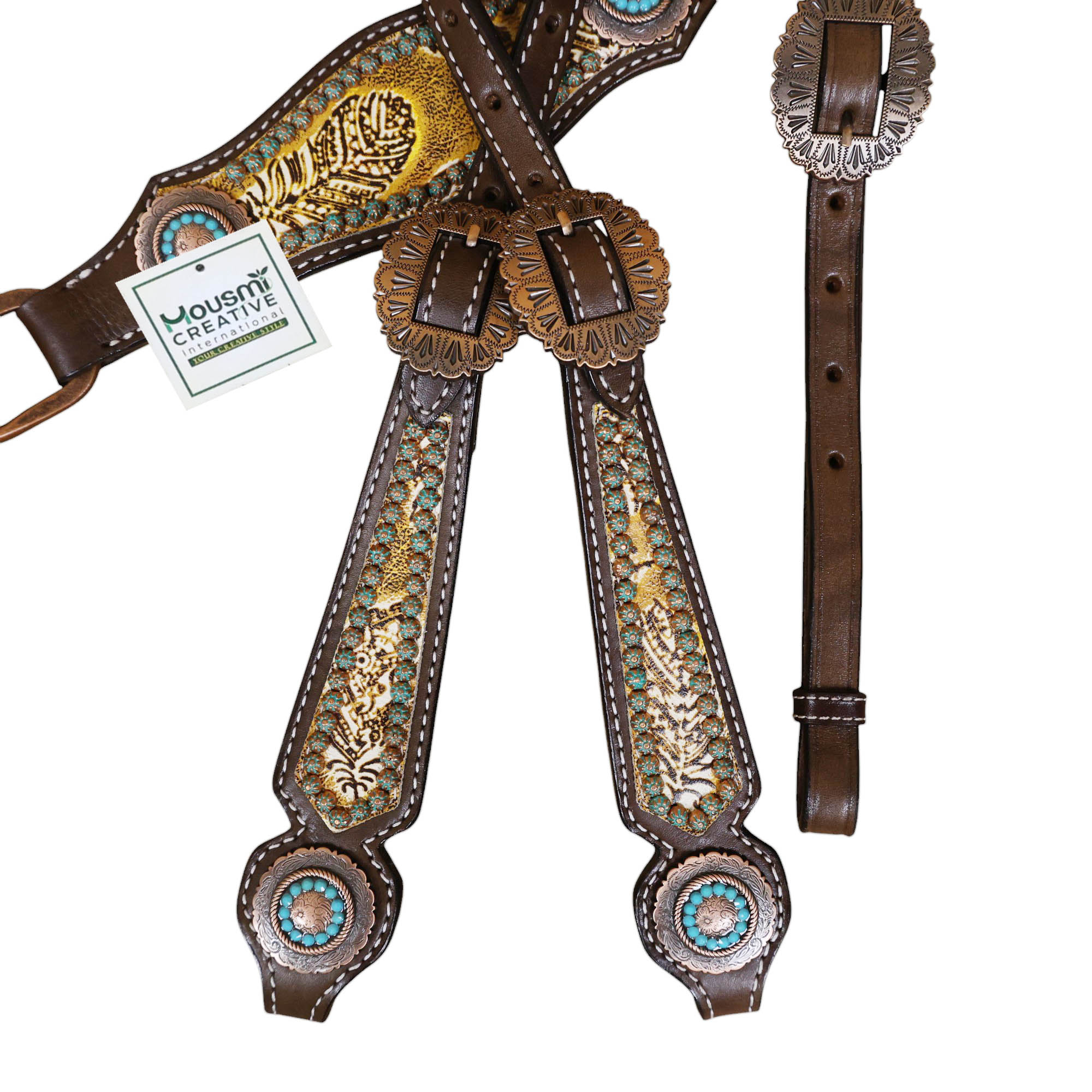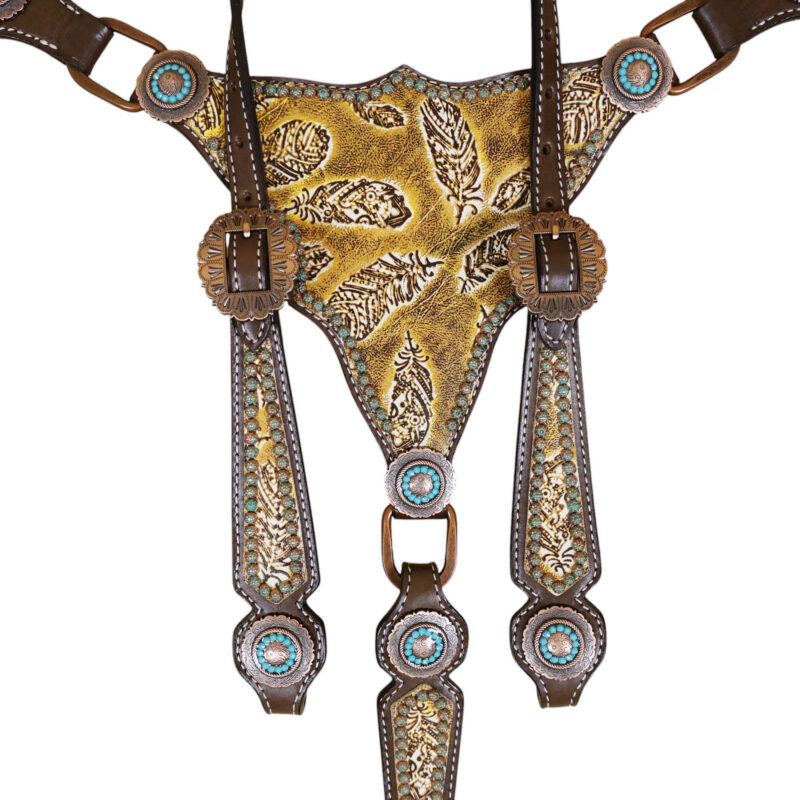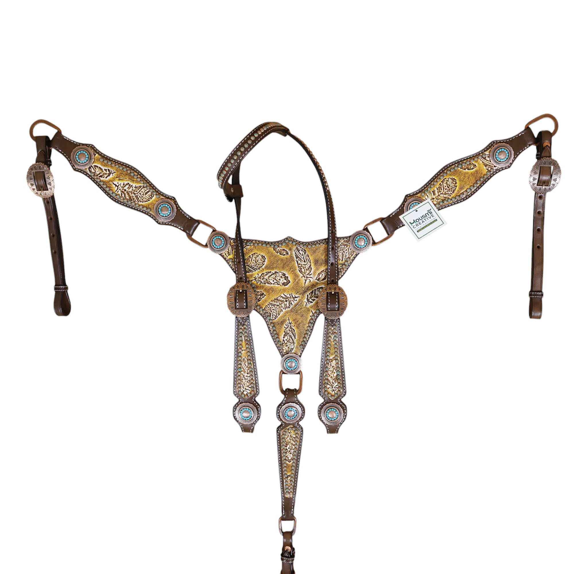 - Feather Textured Headstall Matching Breast Collar Tack Set.