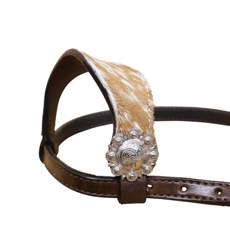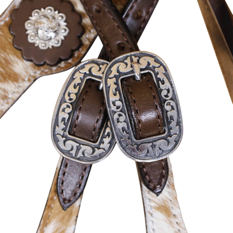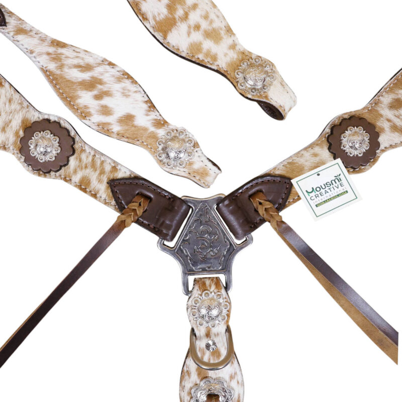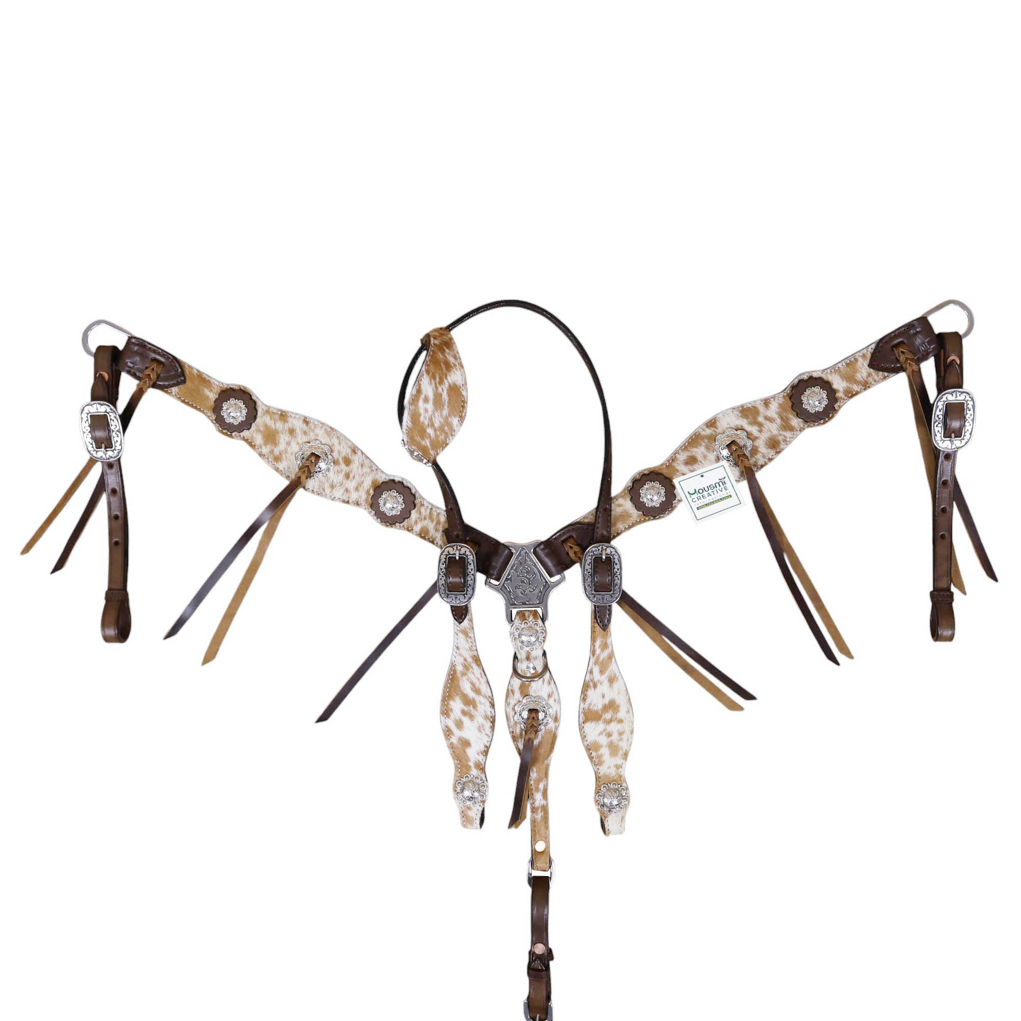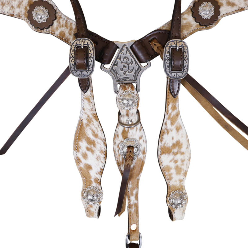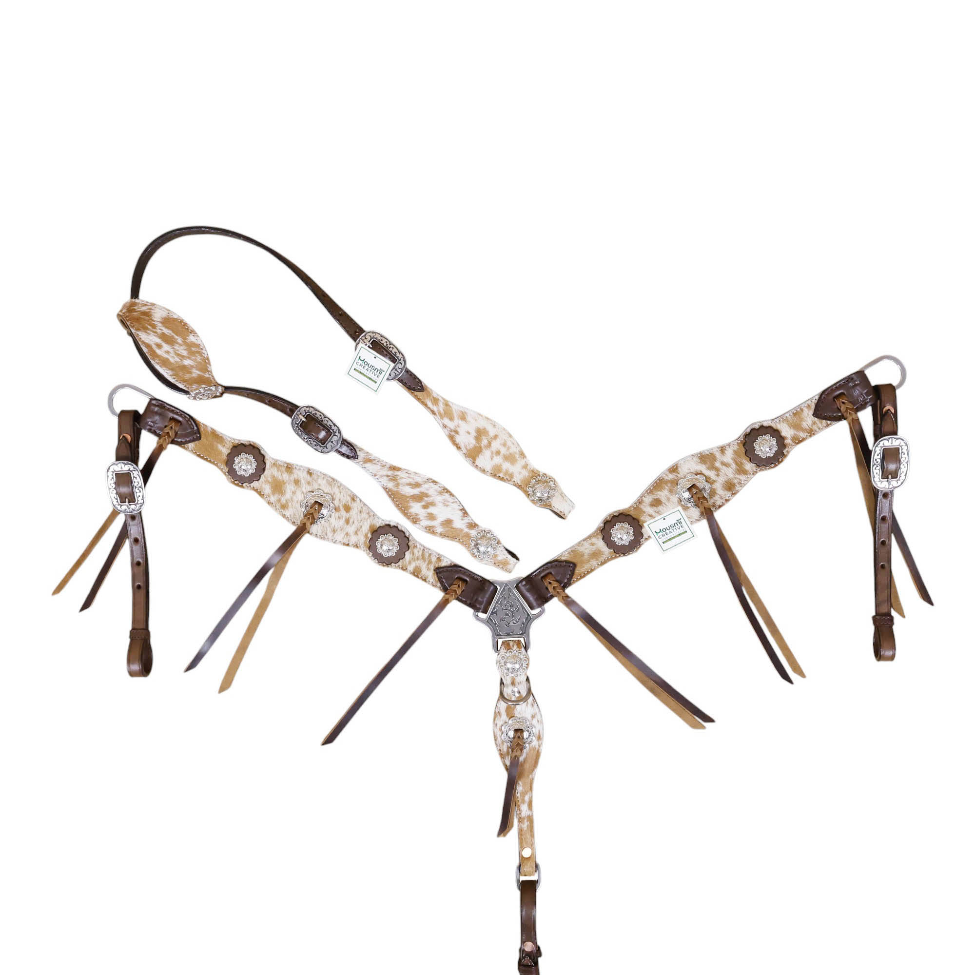 • Natural Cowhide Hair on Leather Headstall Matching Breast Collar Tack Set.