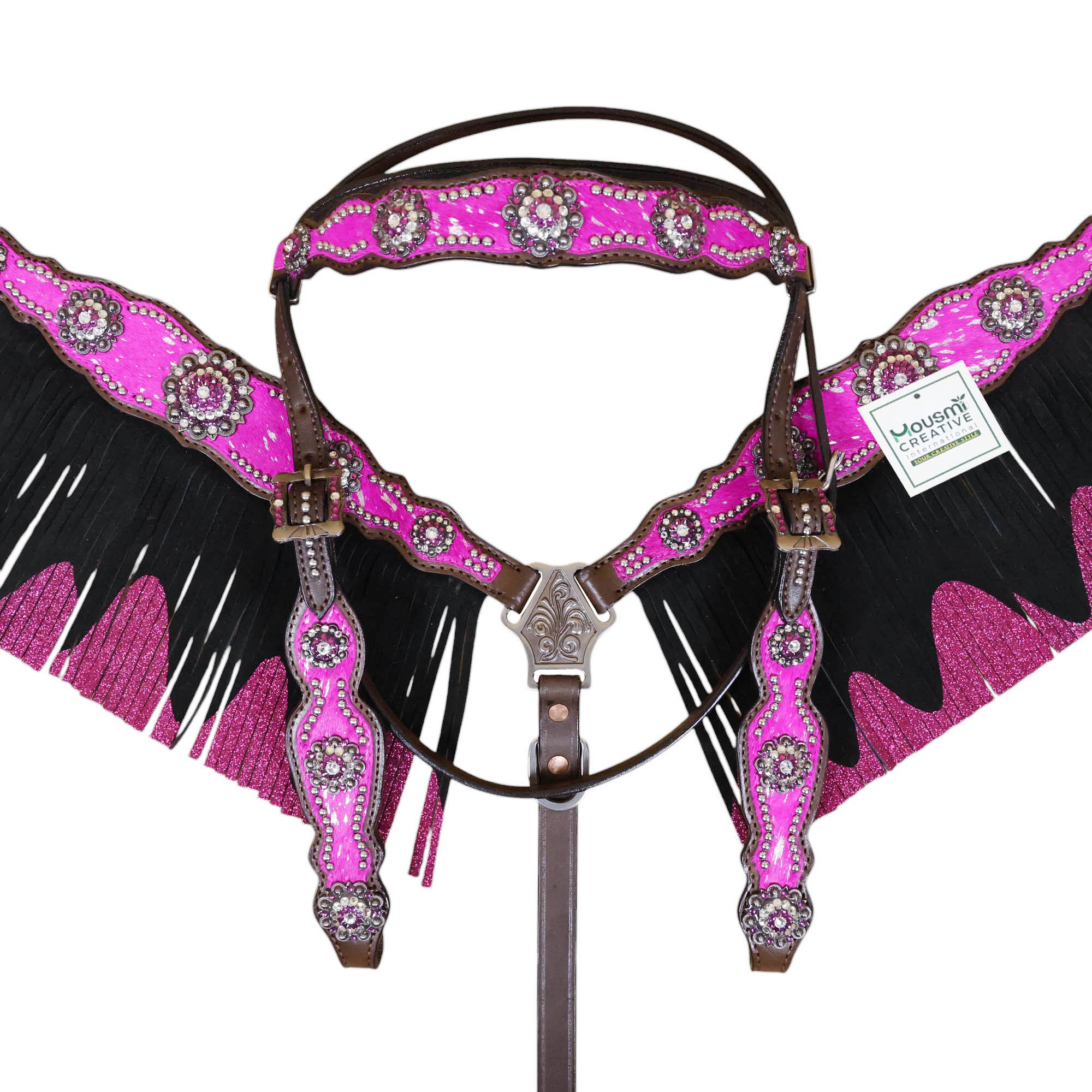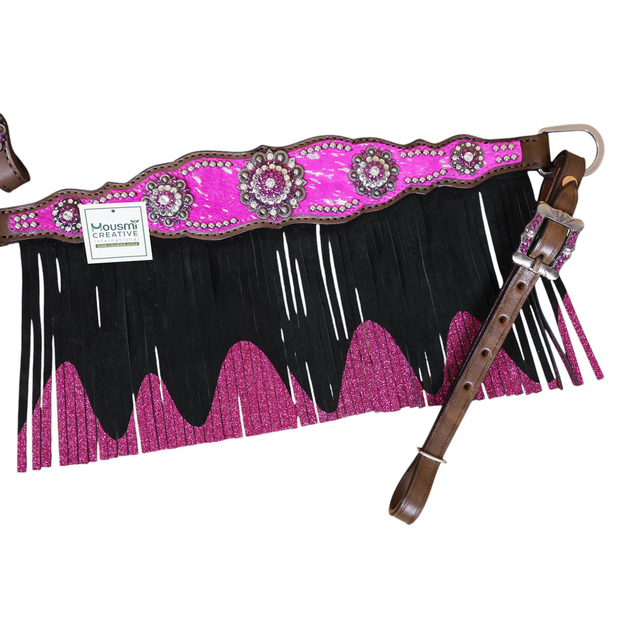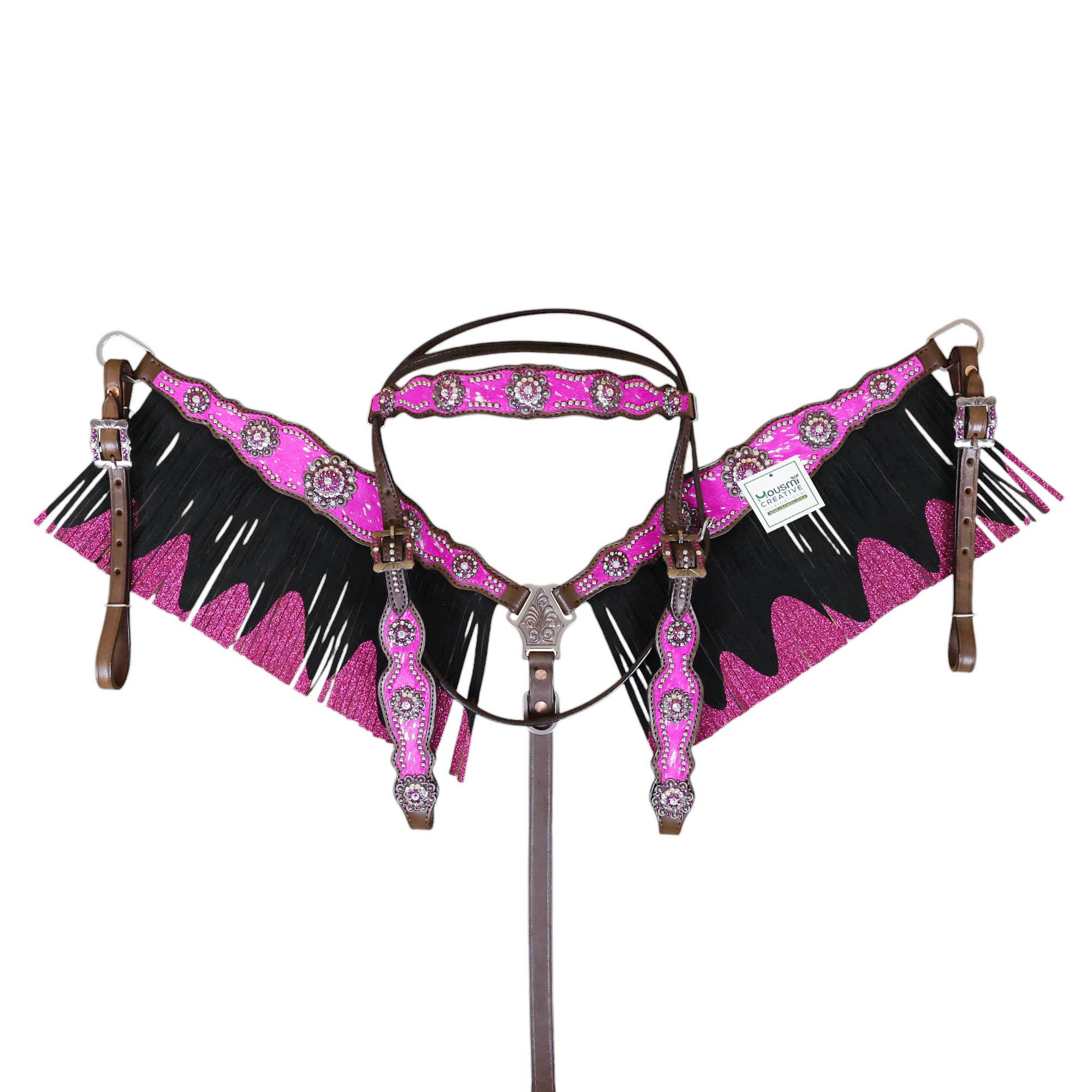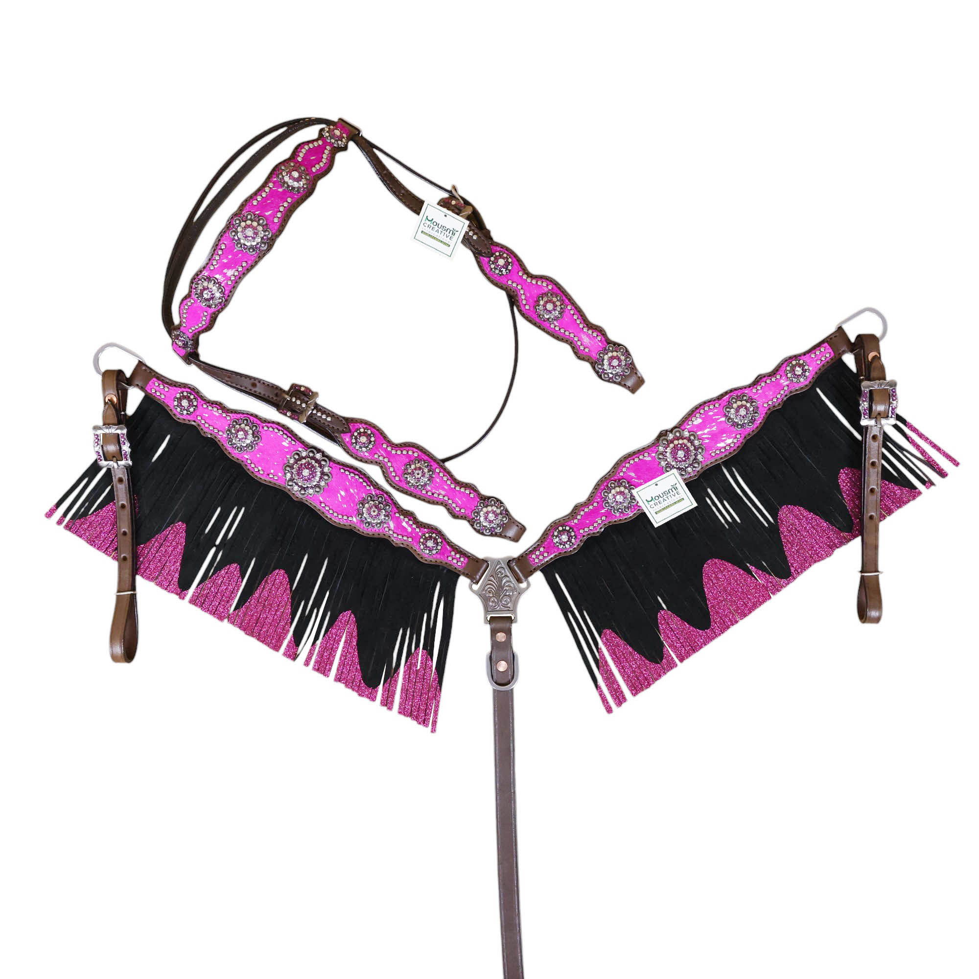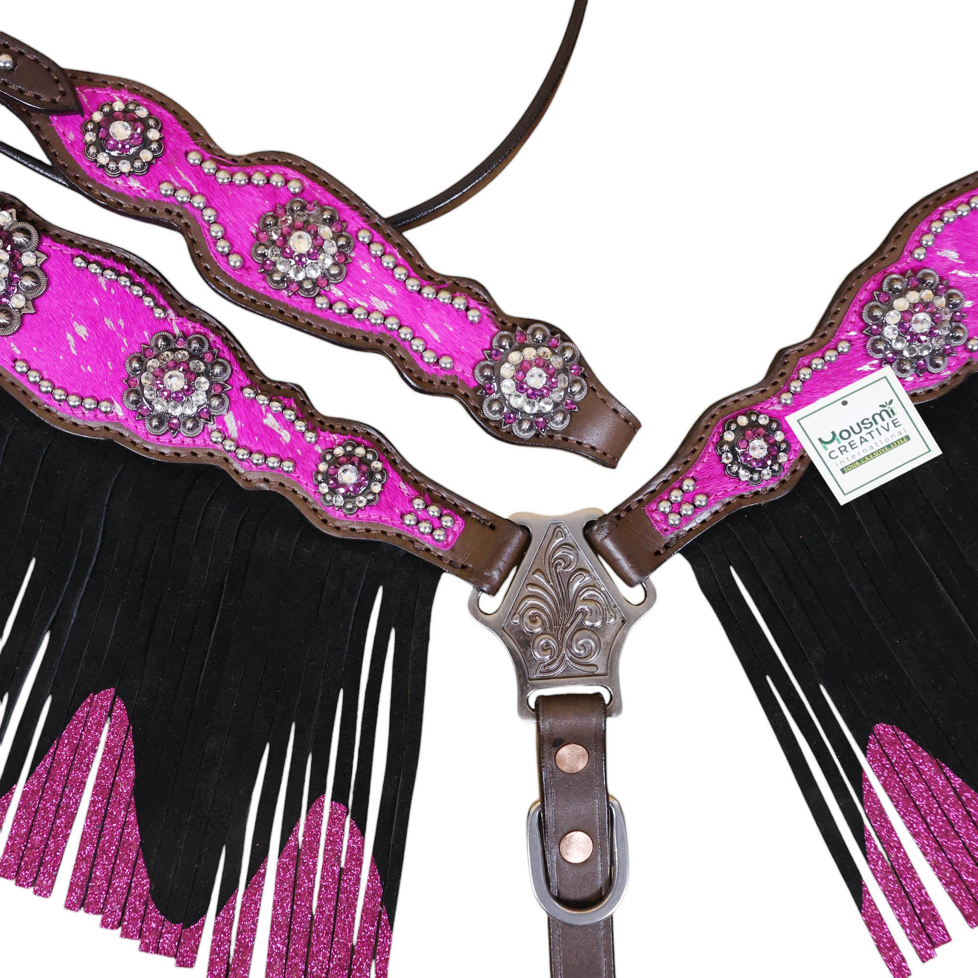 Headstall Type: Western Horse Genuine Cowhide Leather Browband Headstall & Fringe Breast Collar Tack Set.