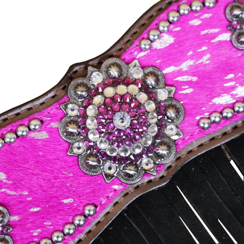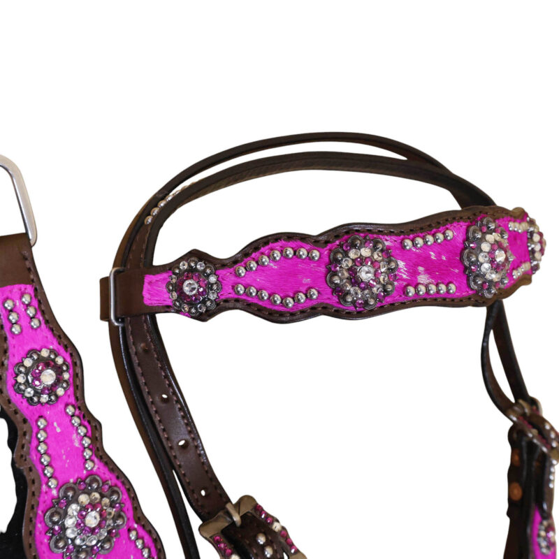 - Acid Wash Hair on Leather Overlay Full Browband Headstall Matching Dual Colour Fringe Breast Collar Matching Tack Set.