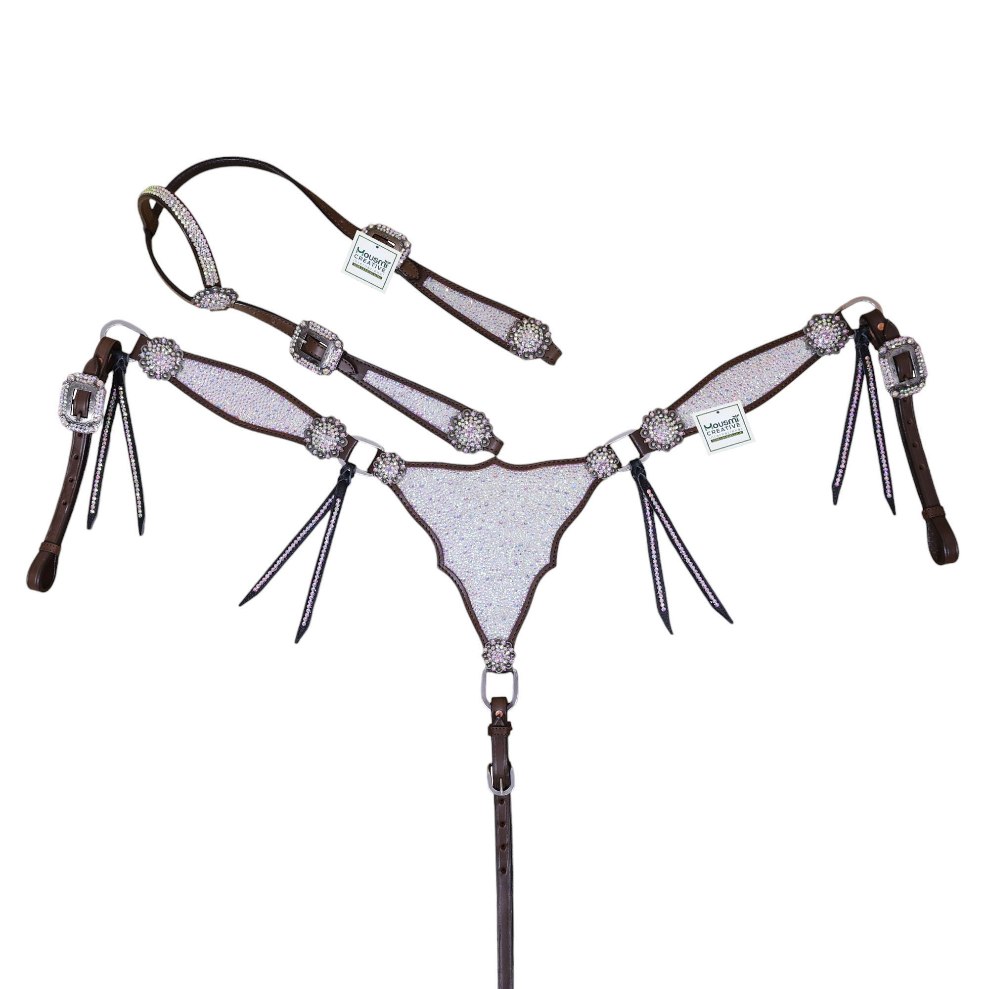 Tack Type: AB Rhinestones Decorated Roping One Ear Headstall & Gladiator Breast Collar Dazzle Tack Set.