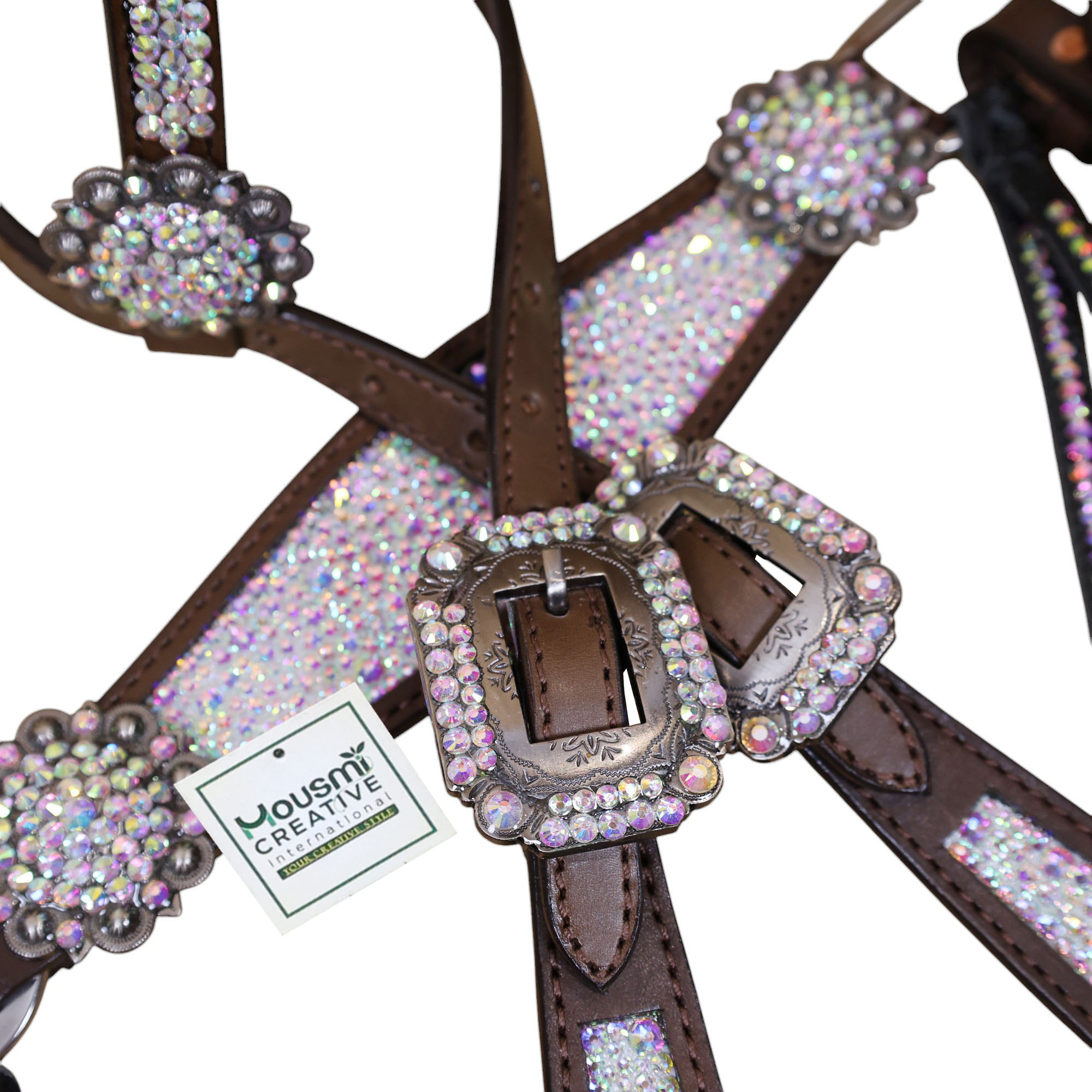 - Fully AB Rhinestone Crystals Decorated.