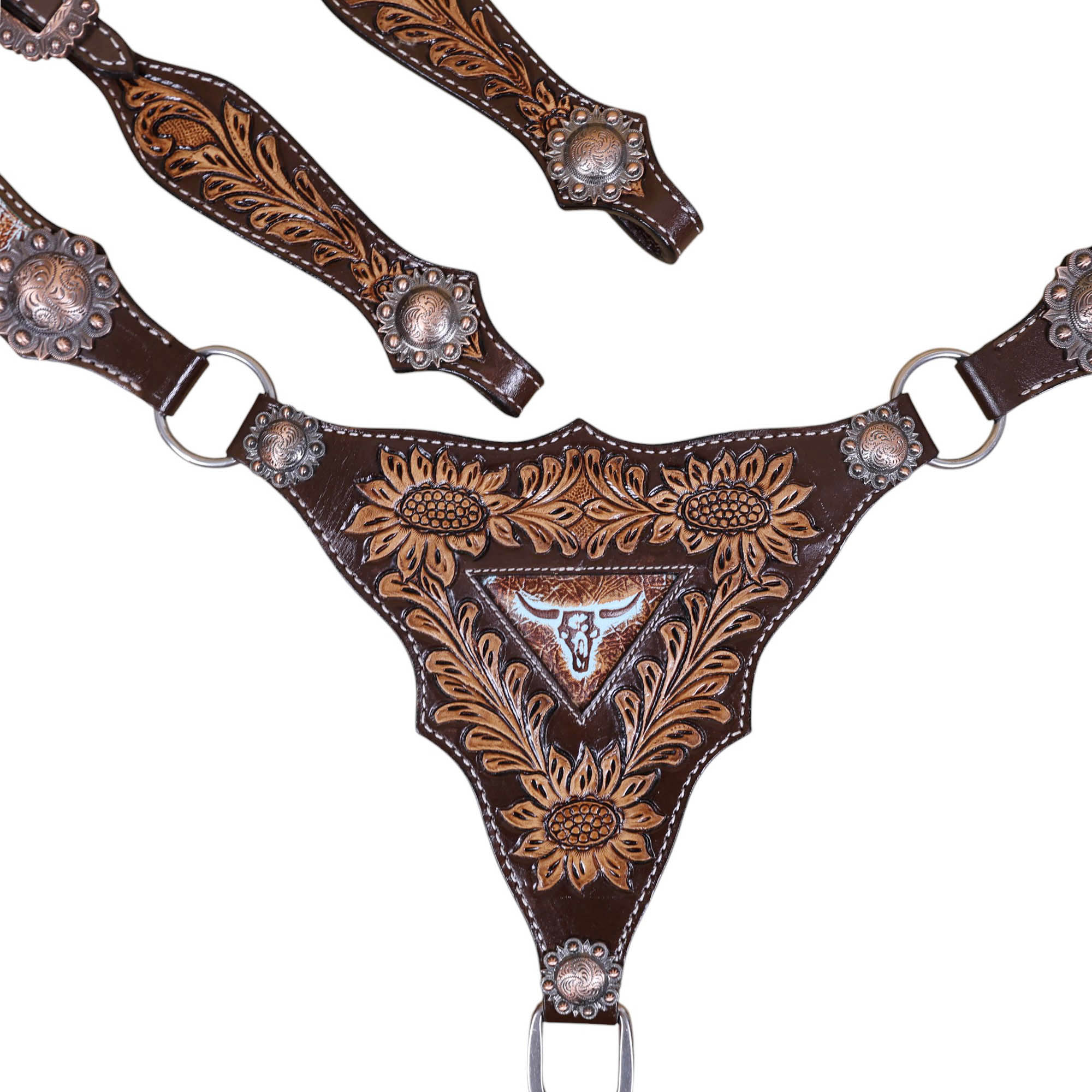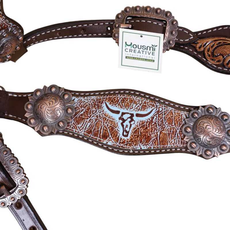 Headstall Type:Â Western Leather Bull Head Headstall & Breast Collar Tack Set.
