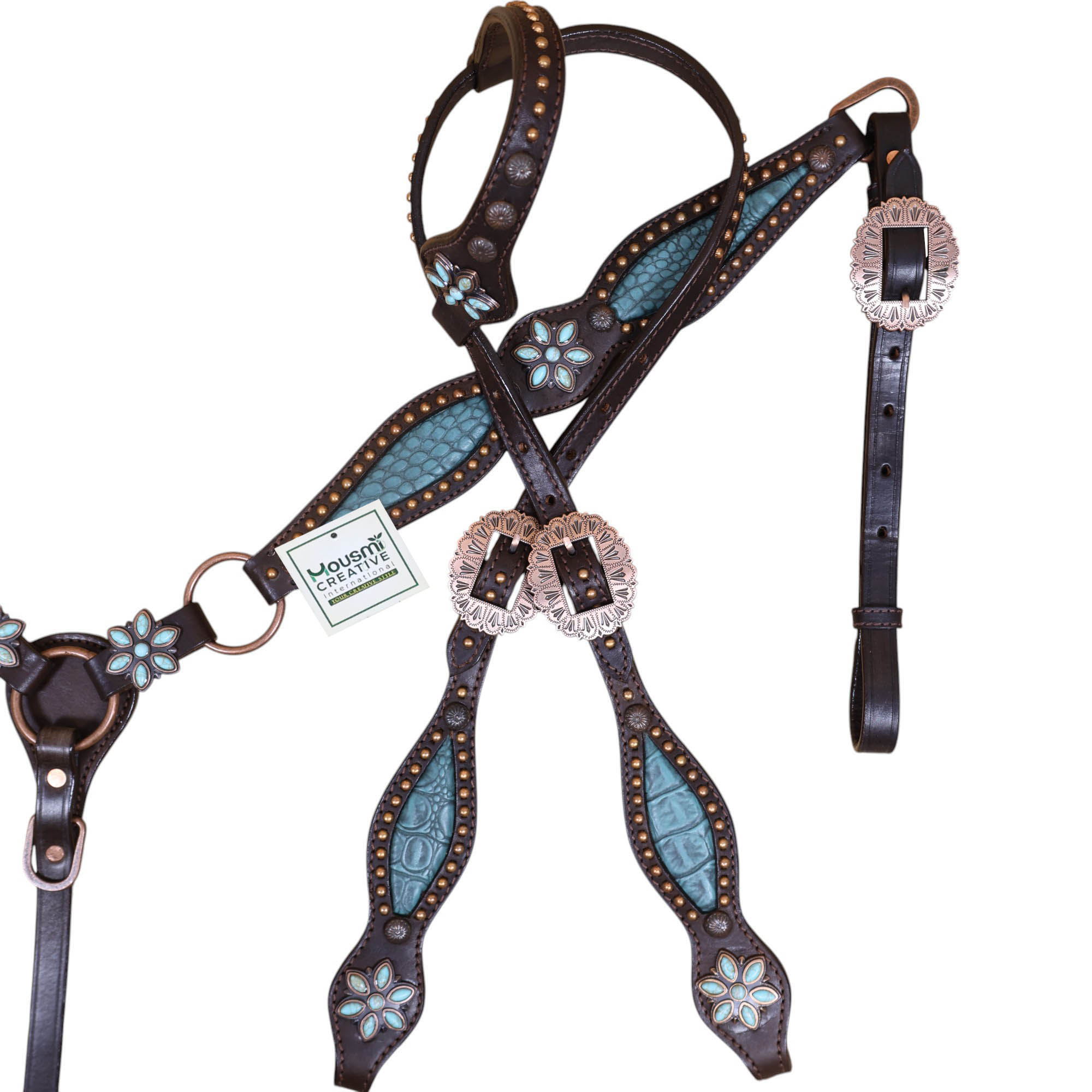 - Turquoise Stones Flower Conchos Decorated.