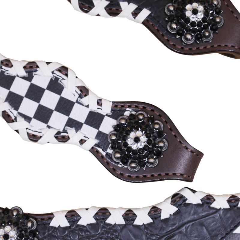 - Crocodile Pattern Cowhide Leather with Black and White Checkered Cowhide Inlay Overlay.