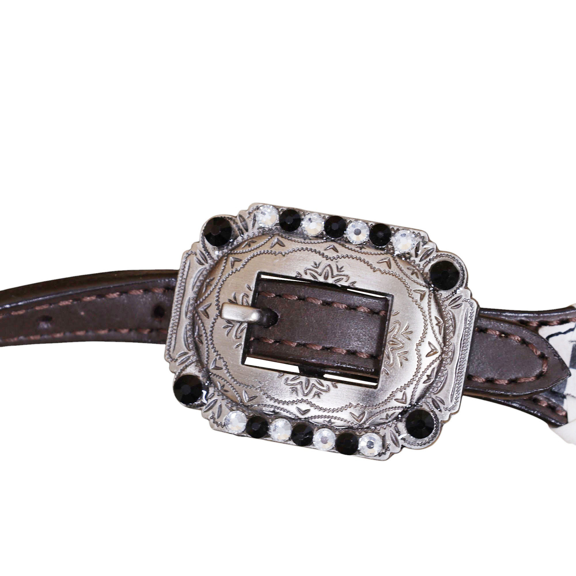 Decoration:Â White Rawhide Leather Criss Cross Braided.