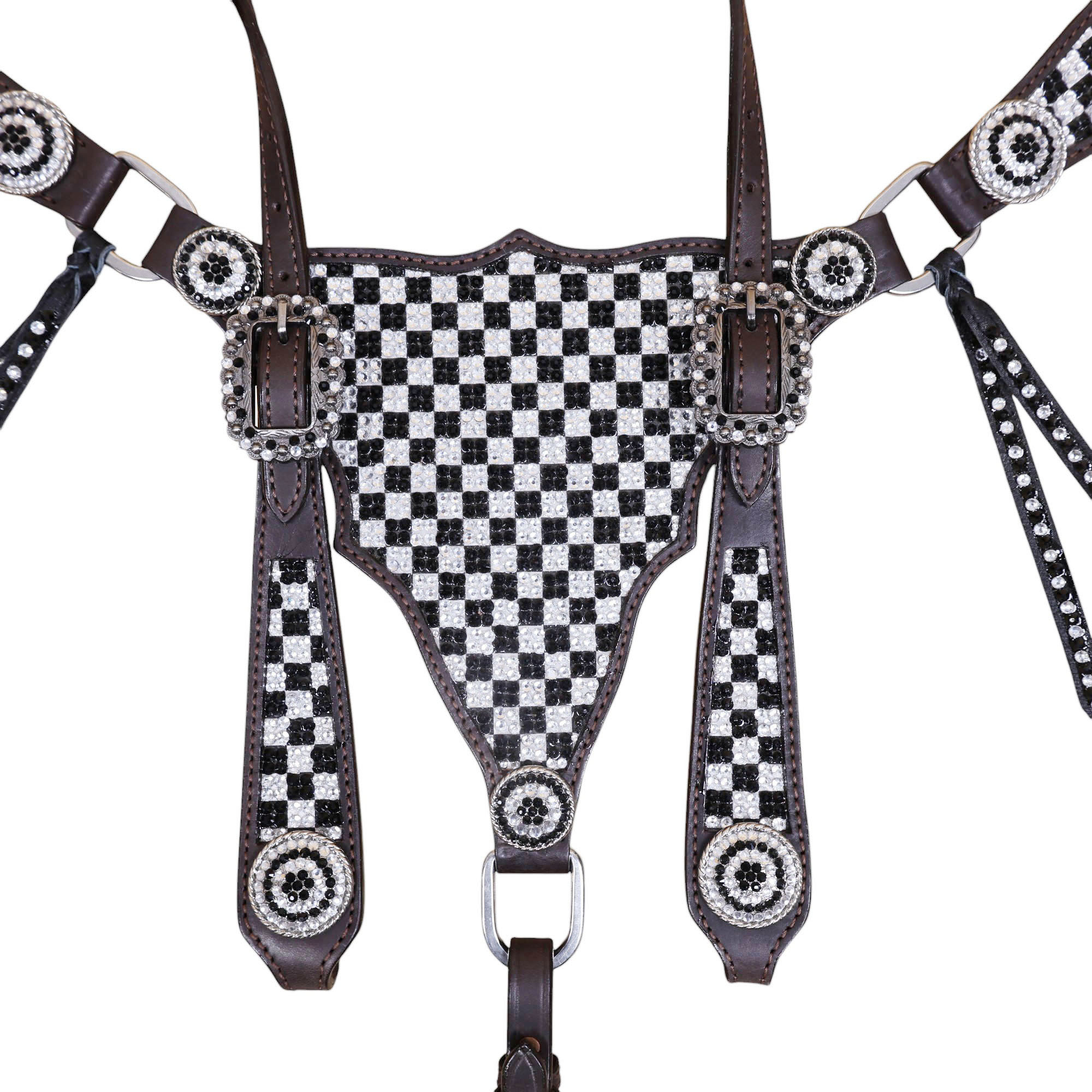Headstall Type:Â Western Leather Rhinestones Decorated Headstall and Gladiator Breast Collar Bling Tack Set.