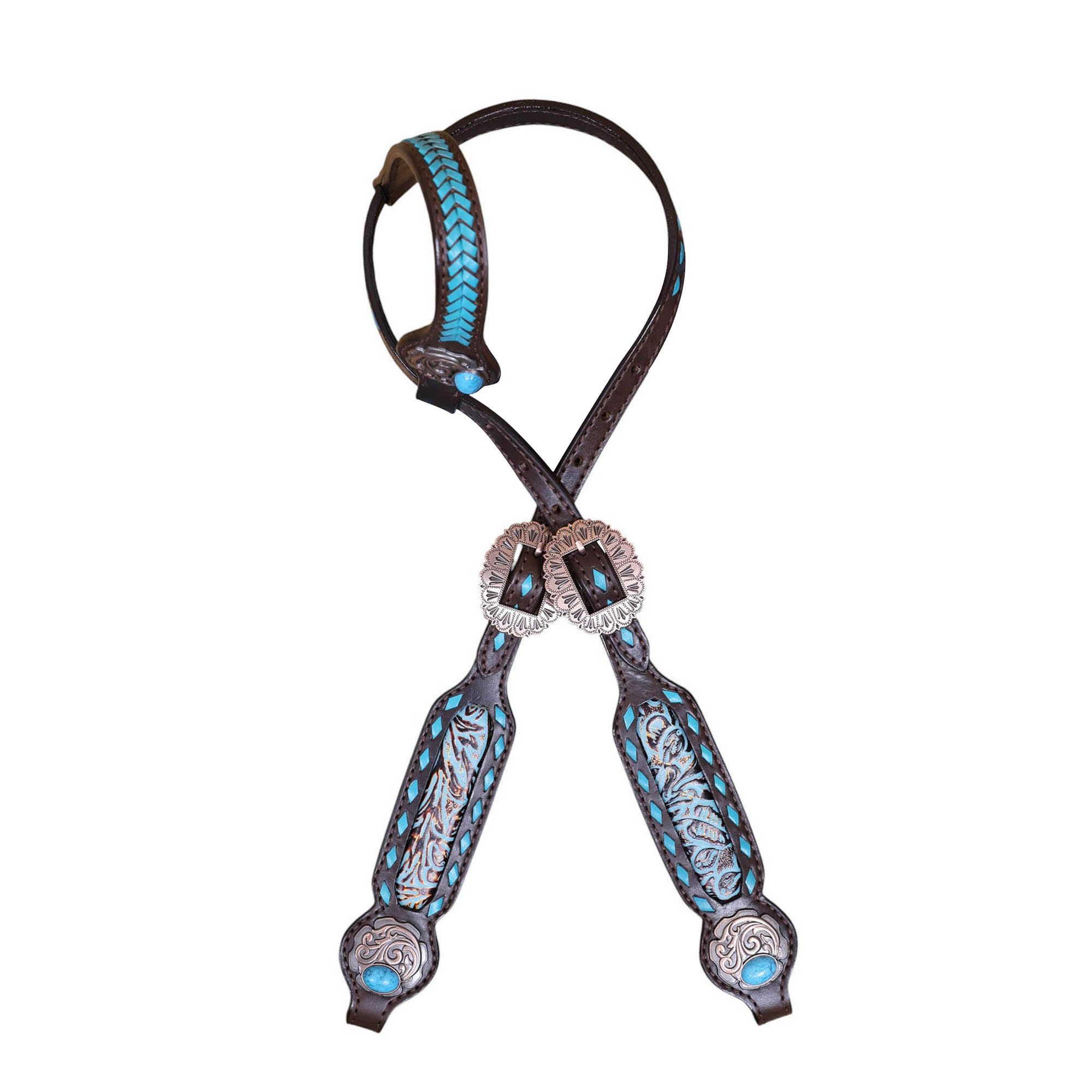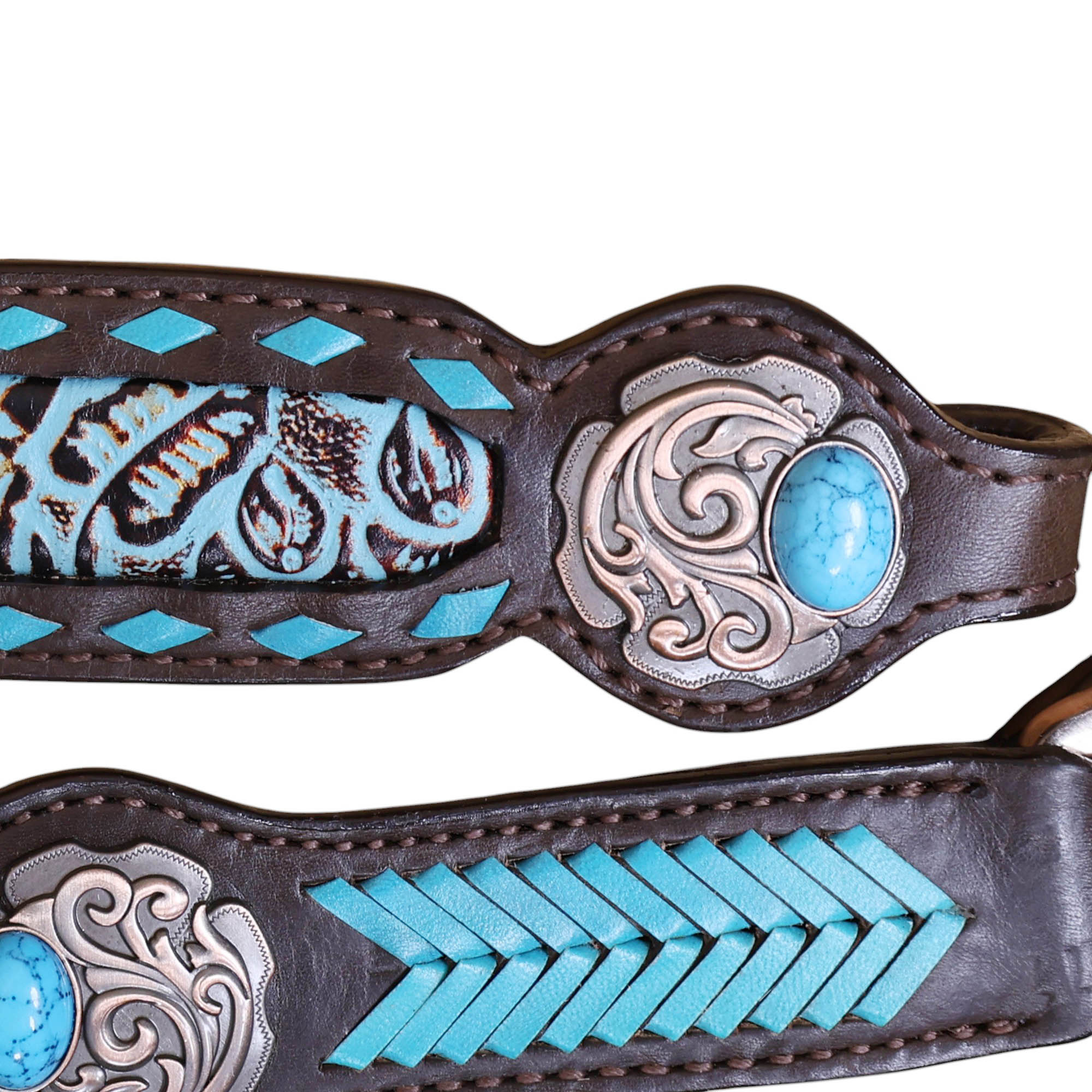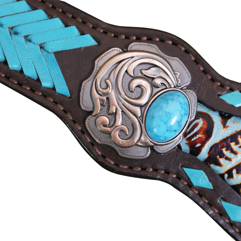 - Turquoise Rawhide Leather Arrow Style Braiding.