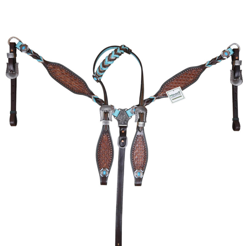 Headstall Type:Â Western Leather One Ear Headstall and Breast Collar Horse Tack Set.