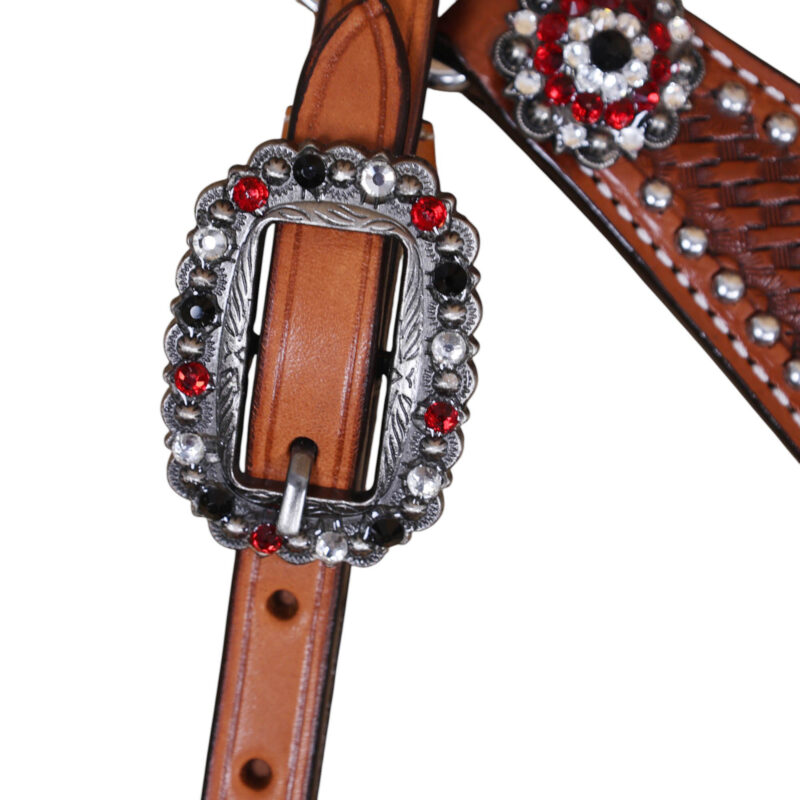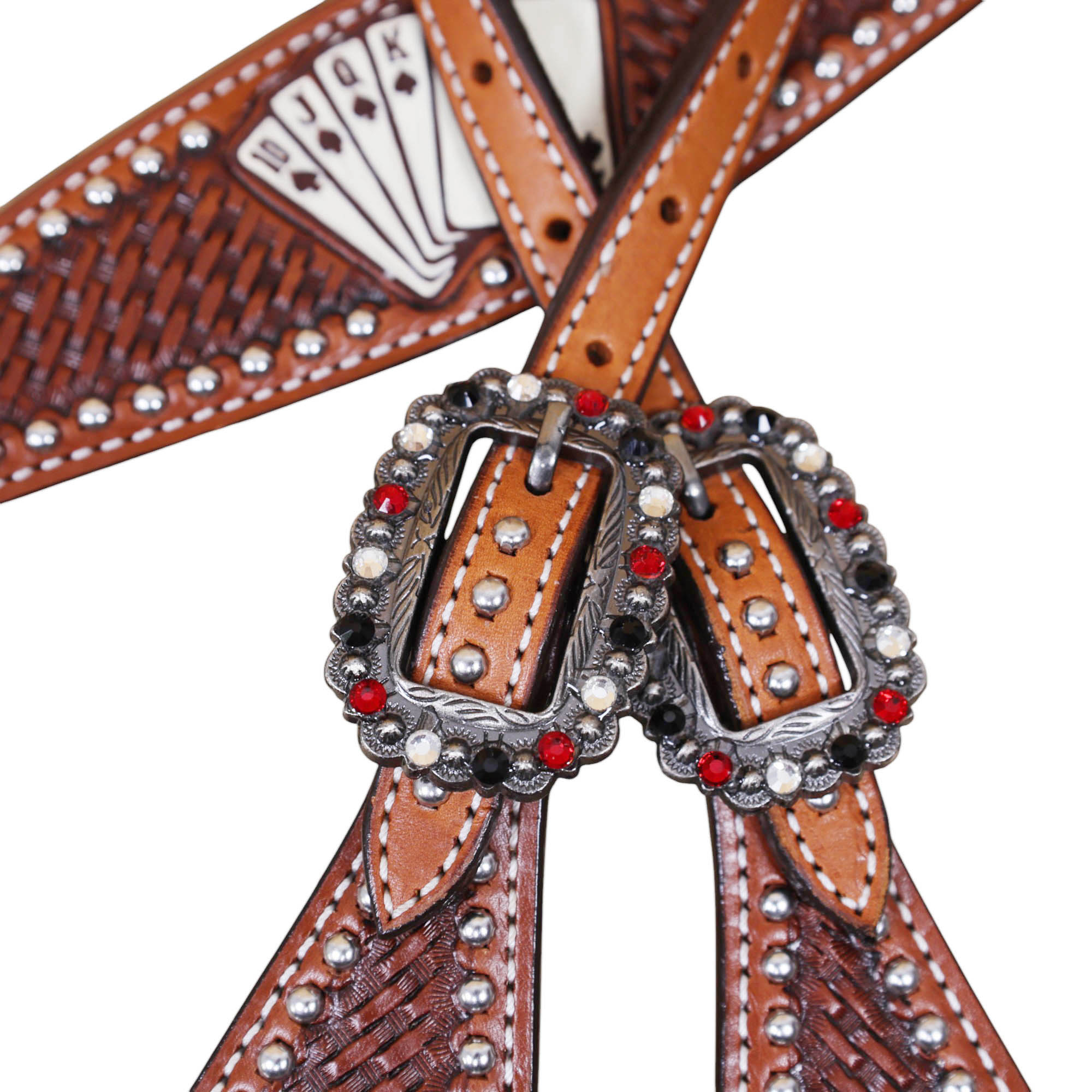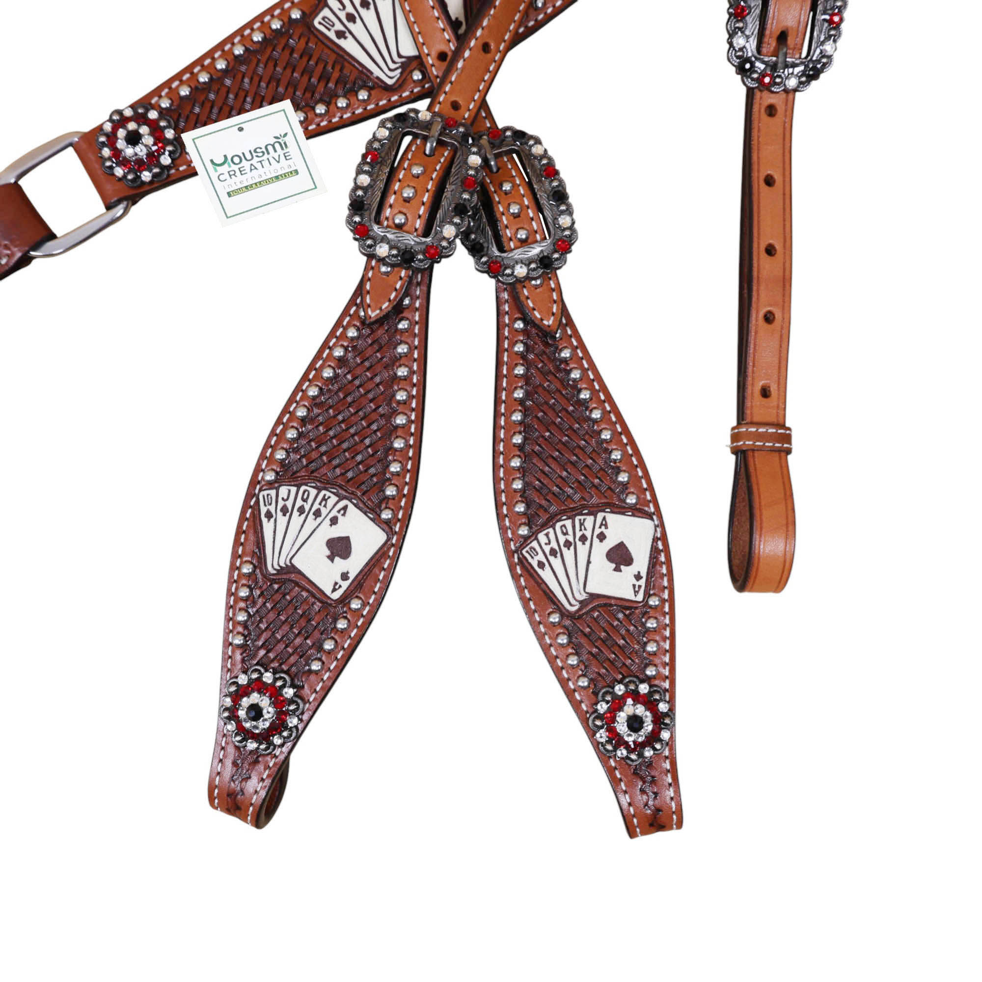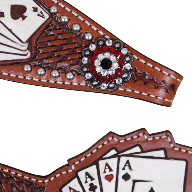 - Poker Card Tooled & Painted Leather One Ear Headstall.