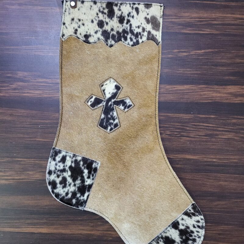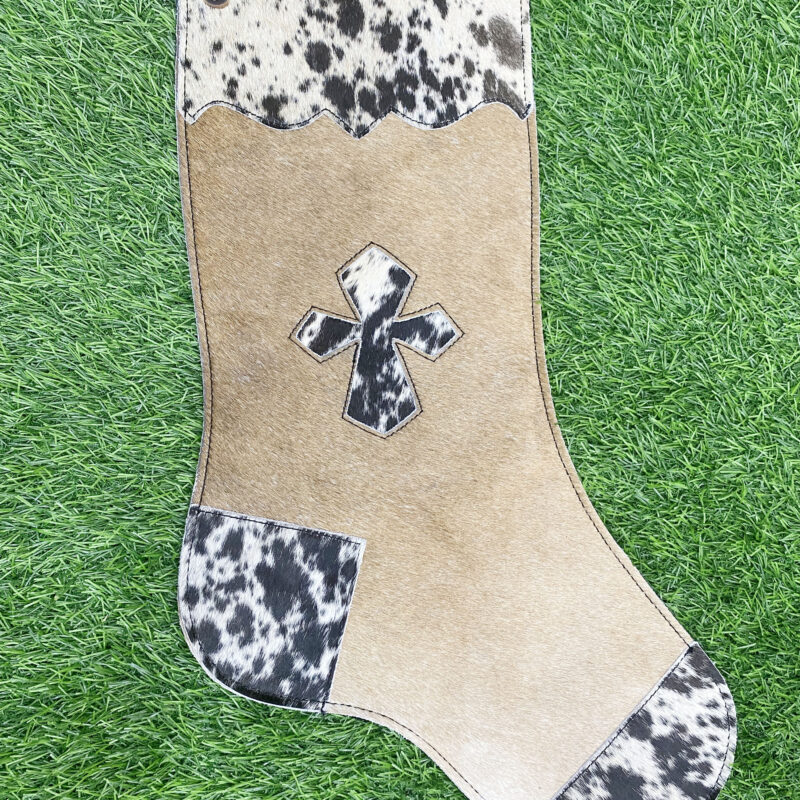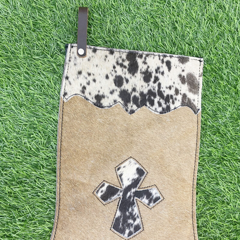 Leather stockings made with Real leather having real cow hide patches in Cross style, handcrafted by skilled artisans.