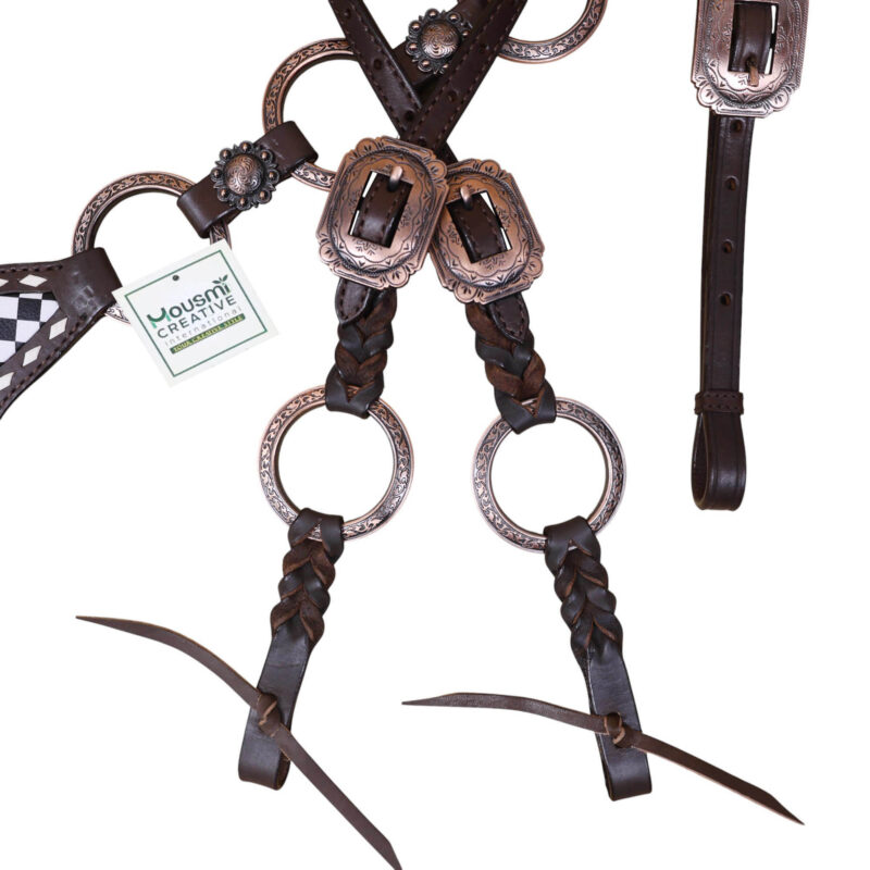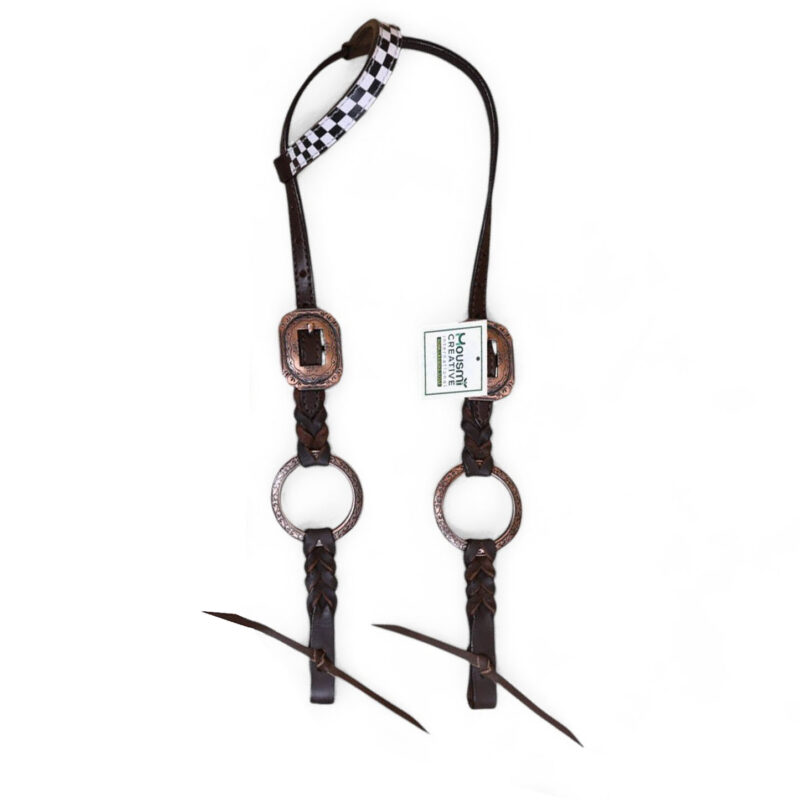 - Braided Leather Headstall with Rings.