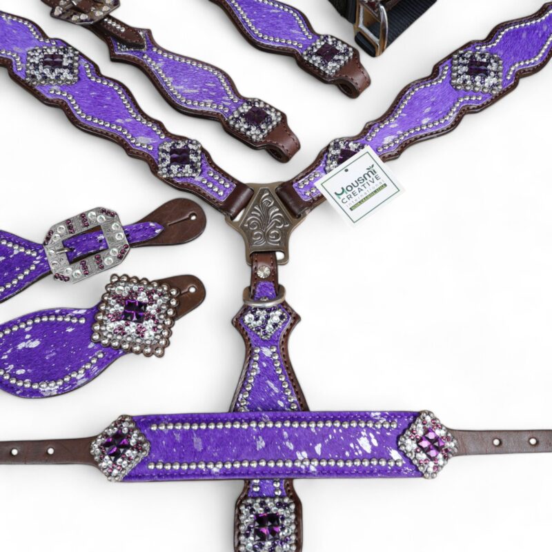 - Acid Wash Purple Hair on Genuine Cowhide Horse Tack Set.