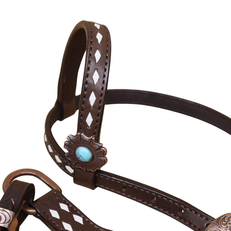 - Rawhide Leather Lace Buck Stitching on Headstall and Breastplate.