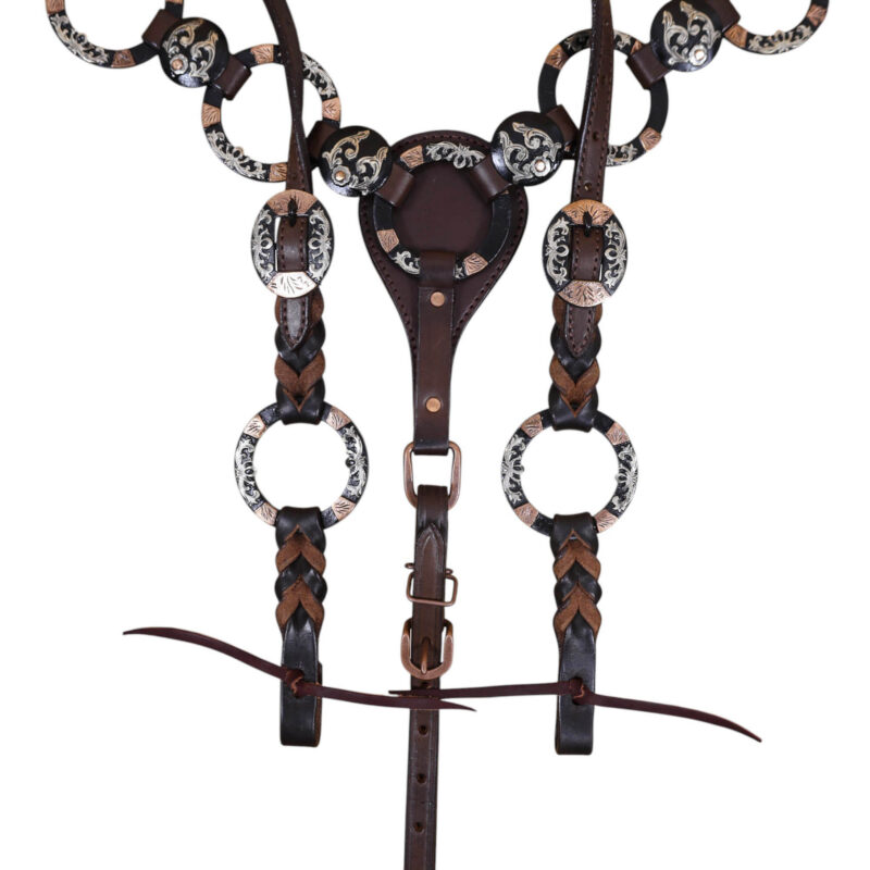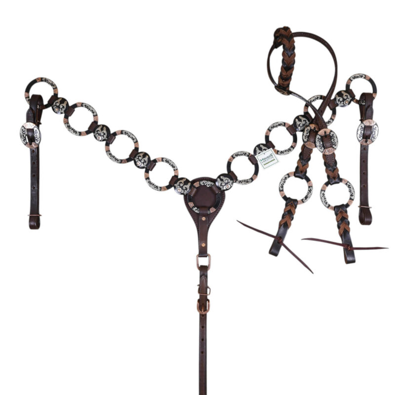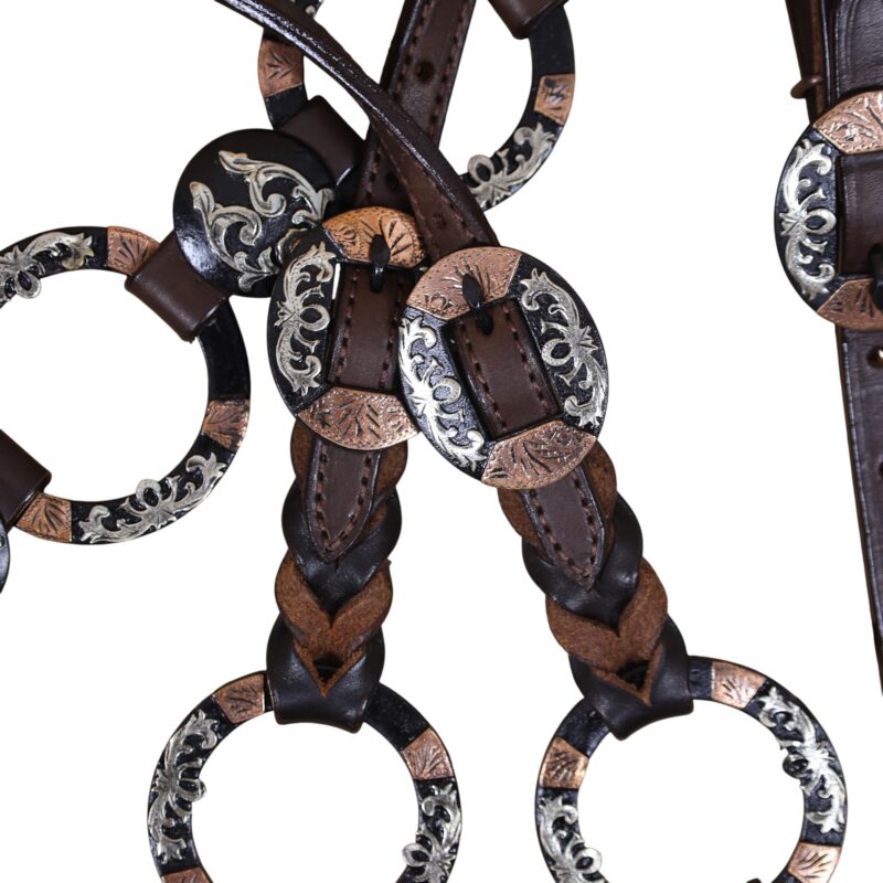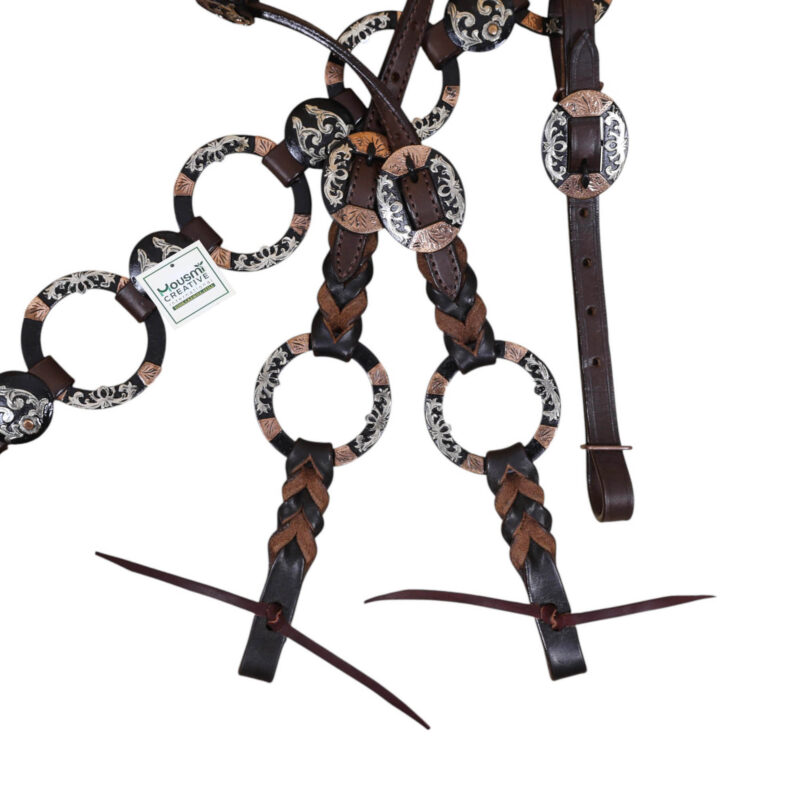 - 3 Tone Metal Conchos Decorated between the Rings.